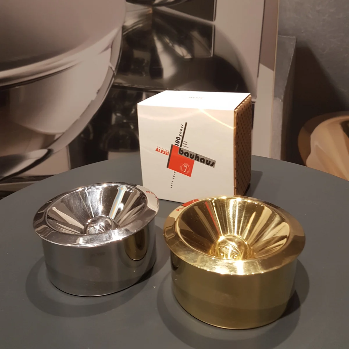 Der Aschenbecher von Alessi besteht aus zwei Elementen und sein Design würde heute von den meisten als "klassisch" bezeichnet werden. Denn die zylindrische Formgebung ist dem Betrachter heute in Mark und Bein übergegangen, obwohl sie erst 1926 Teil der Geburt des Industrial Designs war, das sich als Weiterentwicklung des traditionellen Schmiedehandwerks an der Metallwerkstatt des Bauhauses herausbildete und ästhetische Vorstellungen bis heute maßgeblich prägt.