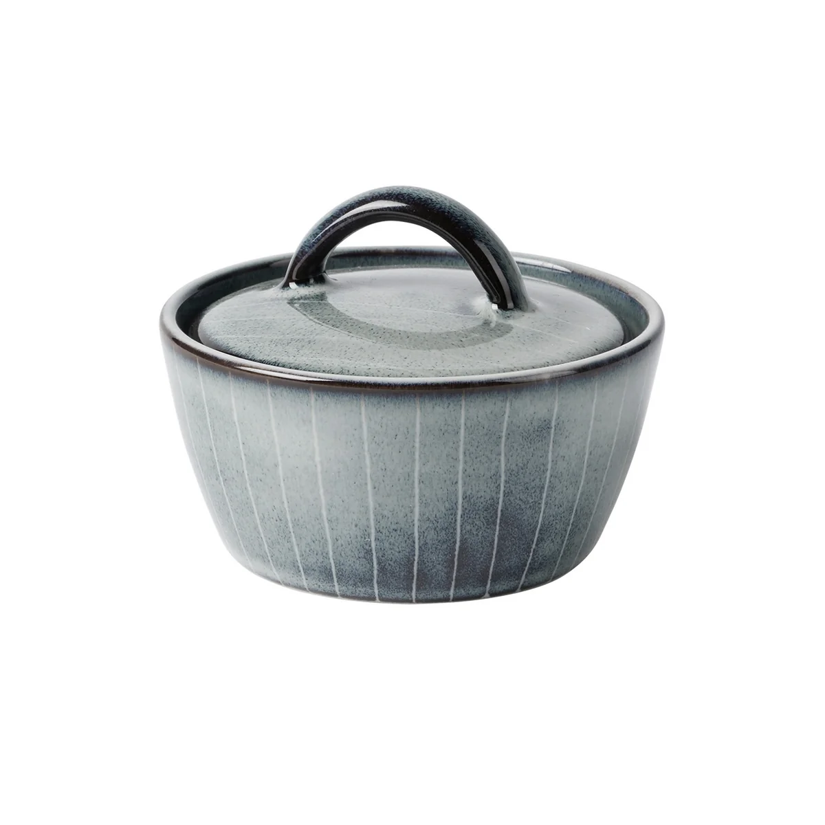 Die Nordic Sea Schale mit Deckel ist Teil der Nordic Geschirr Serie, dem Herzstück des Labels Broste Copenhagen. Seit der Einführung 2009 findet man das Geschirr in vielen Restaurants und Küchen auf der ganzen Welt. Der sanfte Farbverlauf wird durch ein spezielles Brennverfahren erzeugt und steht für die ursprüngliche Kraft des Ozeans. Jedes Stück ist ein Unikat, da die Glasur dynamisch im Brennofen reagiert und so zu unterschiedlichen Texturen und Farben führen kann.