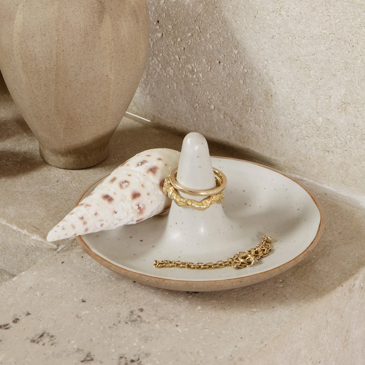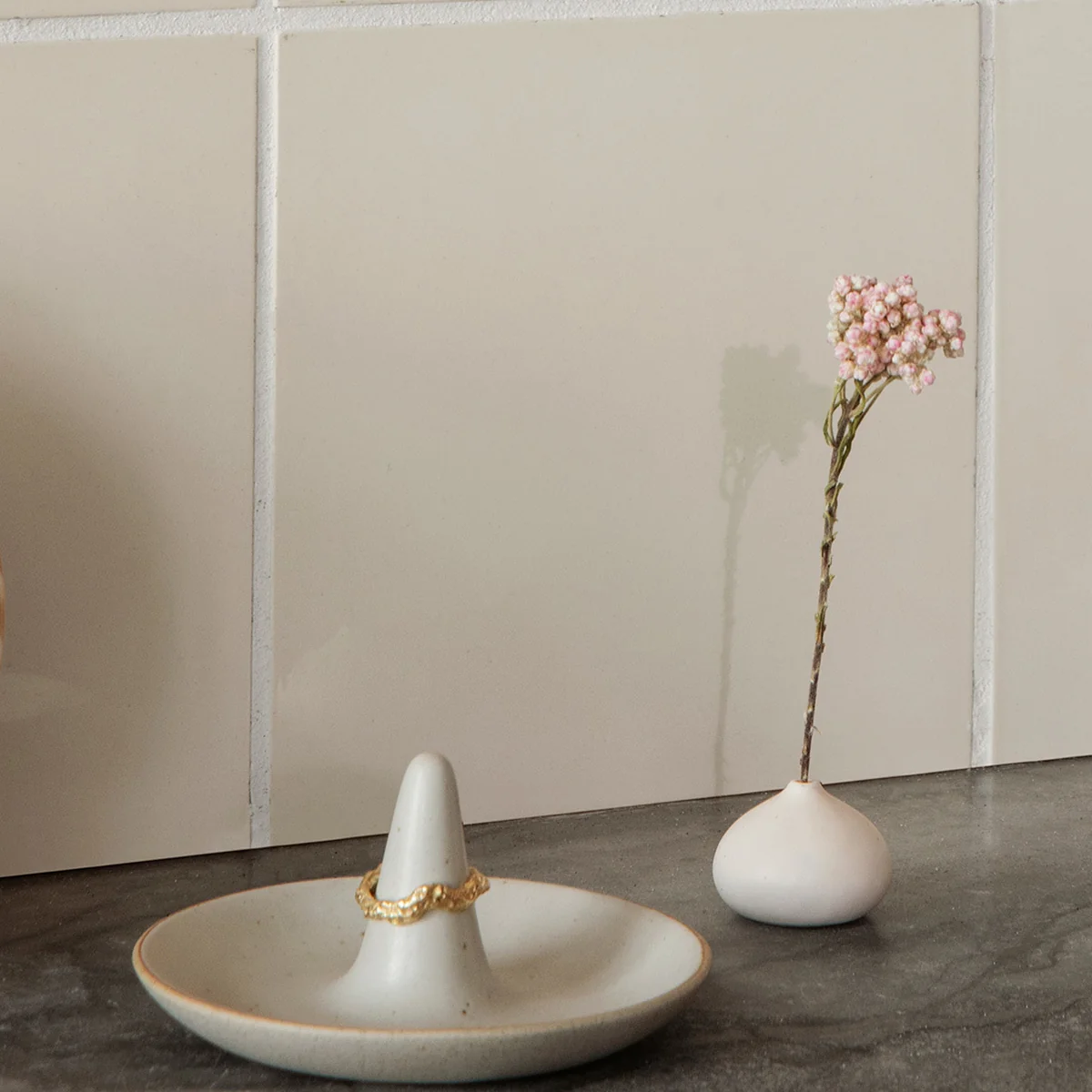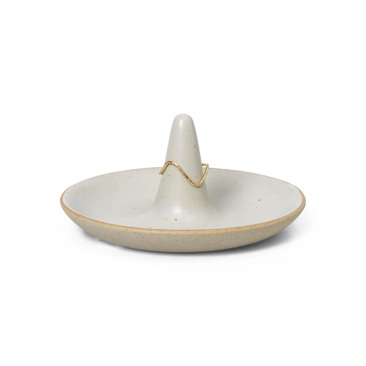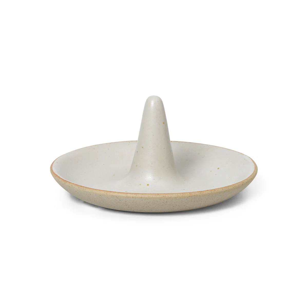 Ordnung ist die halbe Miete. Dies gilt auch für die Ring Schmuckaufbewahrung des dänischen Unternehmens Ferm Living, welche das sichere und unkomplizierte Lagern von Ringen, Ketten und Armbändern zu einem Kinderspiel macht. Ring ist kegelförmig und wird aus unbearbeitetem Porzellan mit einer matten, fast schon milchige Glasur überzogen. Die Innenseite ist glasiert, während die Außenseite der Schale unglasiert ist.