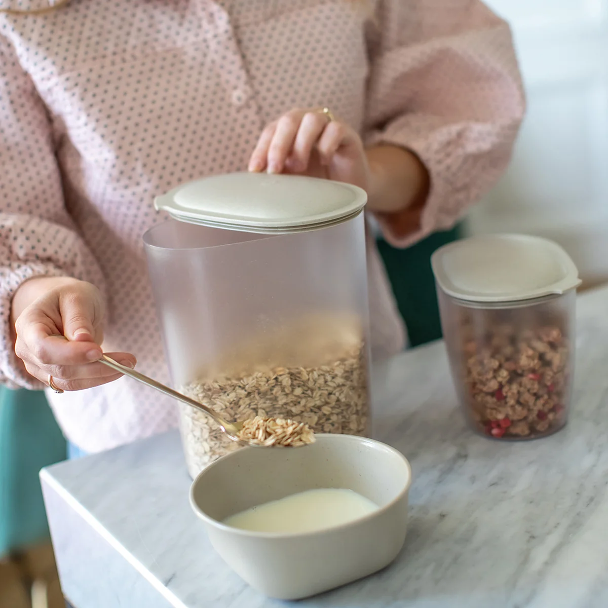 Koziol - CONNECT OVAL Vorratsdose, 1.4 l, nature ash grey