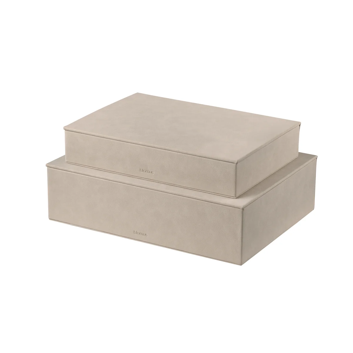 Dank des Deckels lassen sich die Boxen sicher verschließen, sodass ihr Inhalt geschützt bleibt und gleichzeitig für eine aufgeräumte Optik gesorgt ist. Der Bezug aus PU-Wildleder verleiht den Boxen eine hochwertige Ausstrahlung, die sowohl auf dem Schreibtisch als auch in Regalen oder Schränken zum Hingucker wird.