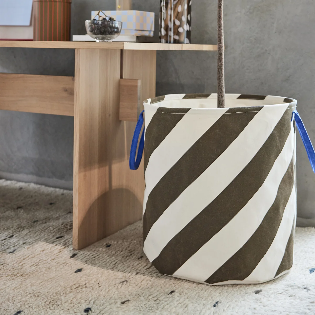 Mit den Maßen Ø52 x H54 cm bietet der Sakki Aufbewahrungskorb reichlich Stauraum für eine Vielzahl von Gegenständen, von Wäsche und Bettwäsche bis hin zu Spielzeug und Decken. Sein vielseitiges Design fügt sich nahtlos in jeden Raum ein und hilft, eine aufgeräumte und organisierte Umgebung zu schaffen.
