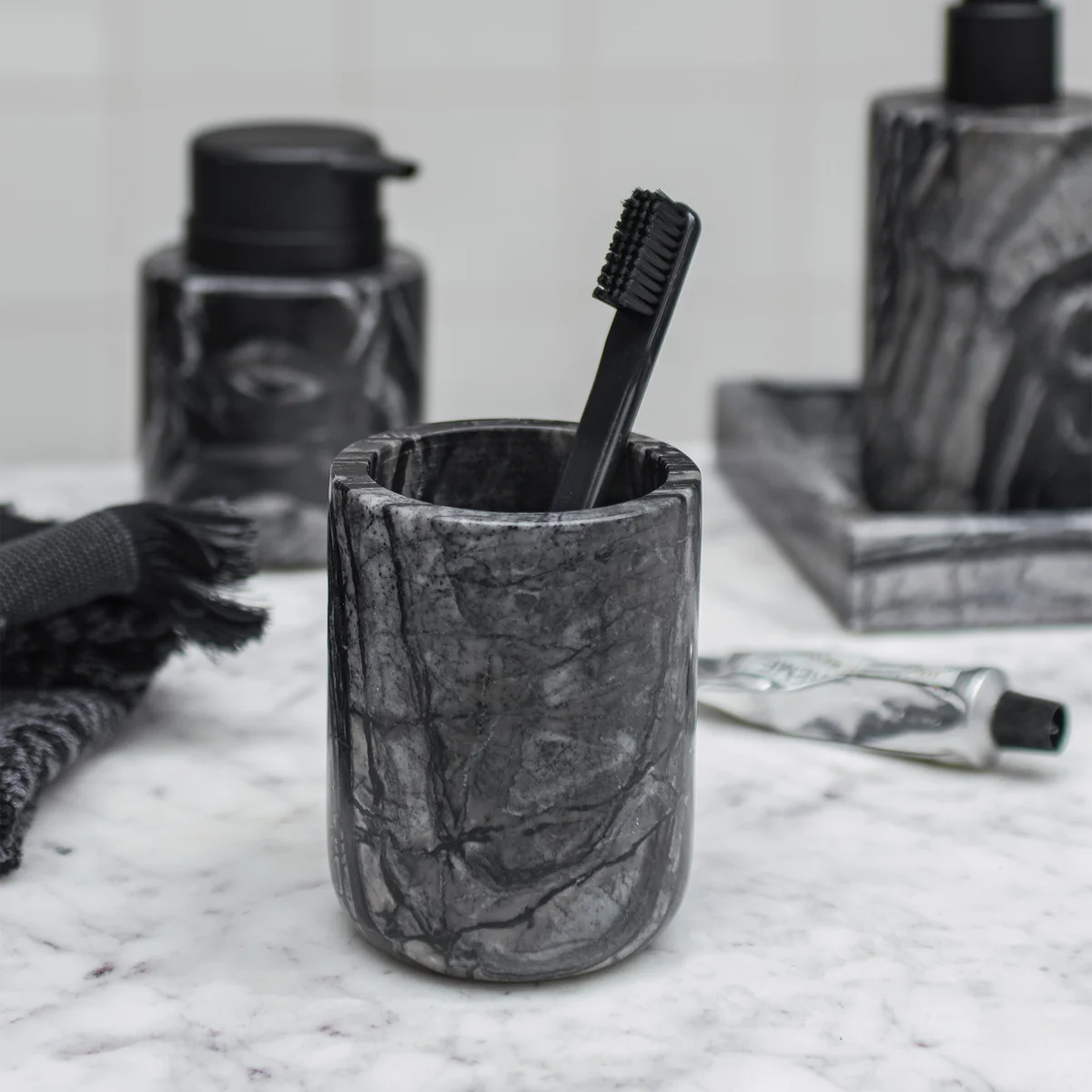 Der Marble Zahnputzbecher von Mette Ditmer ist ein erhabenes und raffiniertes Badezimmeraccessoire, das Eleganz und Funktion in sich vereint. Der Becher ist nicht nur praktisch für die tägliche Mundhygiene, sondern auch ein stilvolles Dekorationselement, das dem Badezimmer eine gehobene Note verleiht. Marmor ist ein hochwertiges und langlebiges Material, das für seine Robustheit und Ästhetik geschätzt wird. Er ist resistent gegen Feuchtigkeit und Flecken, was ihn ideal für Badezimmeraccessoires macht.