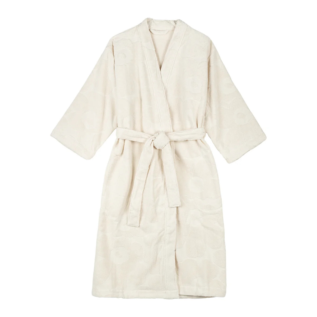 Der Pienni Unikko Bademantel von Marimekko bringt Komfort und ikonisches Design in Einklang. Gefertigt aus weichem Bio-Baumwollfrottee, ist er mit dem berühmten Pienni Unikko Muster verziert, das florale Eleganz und moderne Ästhetik vereint. Der Bademantel verfügt über großzügige Taschen und einen abnehmbaren Gürtel, der für eine bequeme Passform sorgt.
