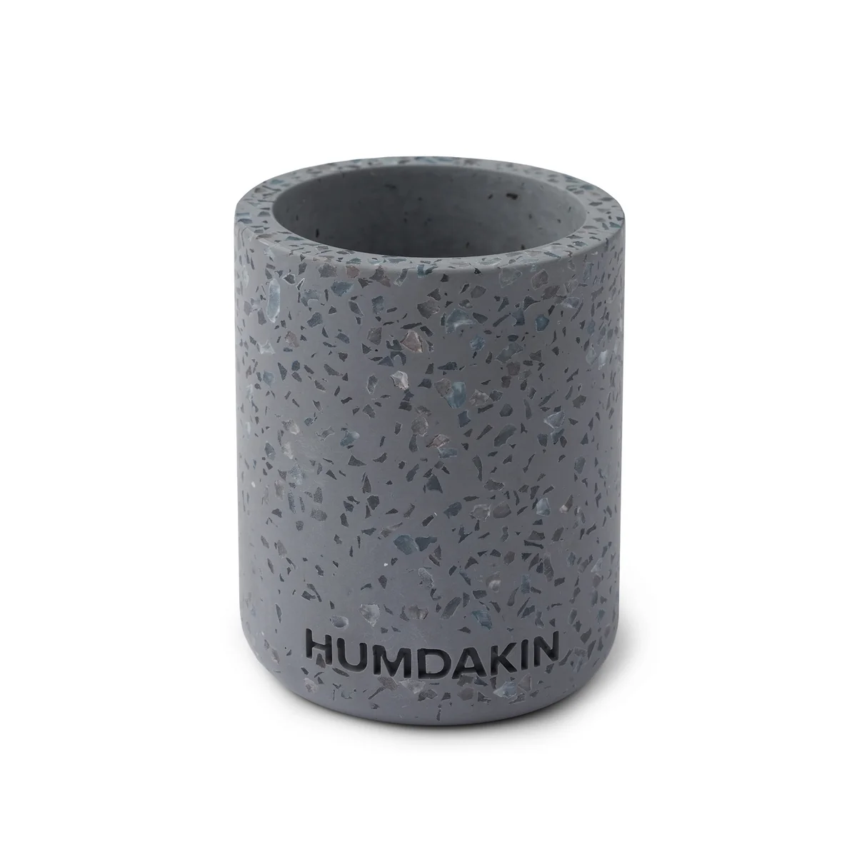 Der Terrazzo Zahnbürstenhalter von Humdakin ist ein wunderschöner, becherähnlicher Artikel aus dem Material Terrazzo. Das Material ist eigentlich eher für Fußböden aus den 70er Jahren bekannt, doch verleiht es vor allem Einrichtungsgegenständen im Badezimmer einen natürlichen und robusten Charme. Der Zahnbürstenhalter ist etwa 10 cm hoch, an der Vorderseite ist der Markenname "Humdakin" hochwertig eingraviert.