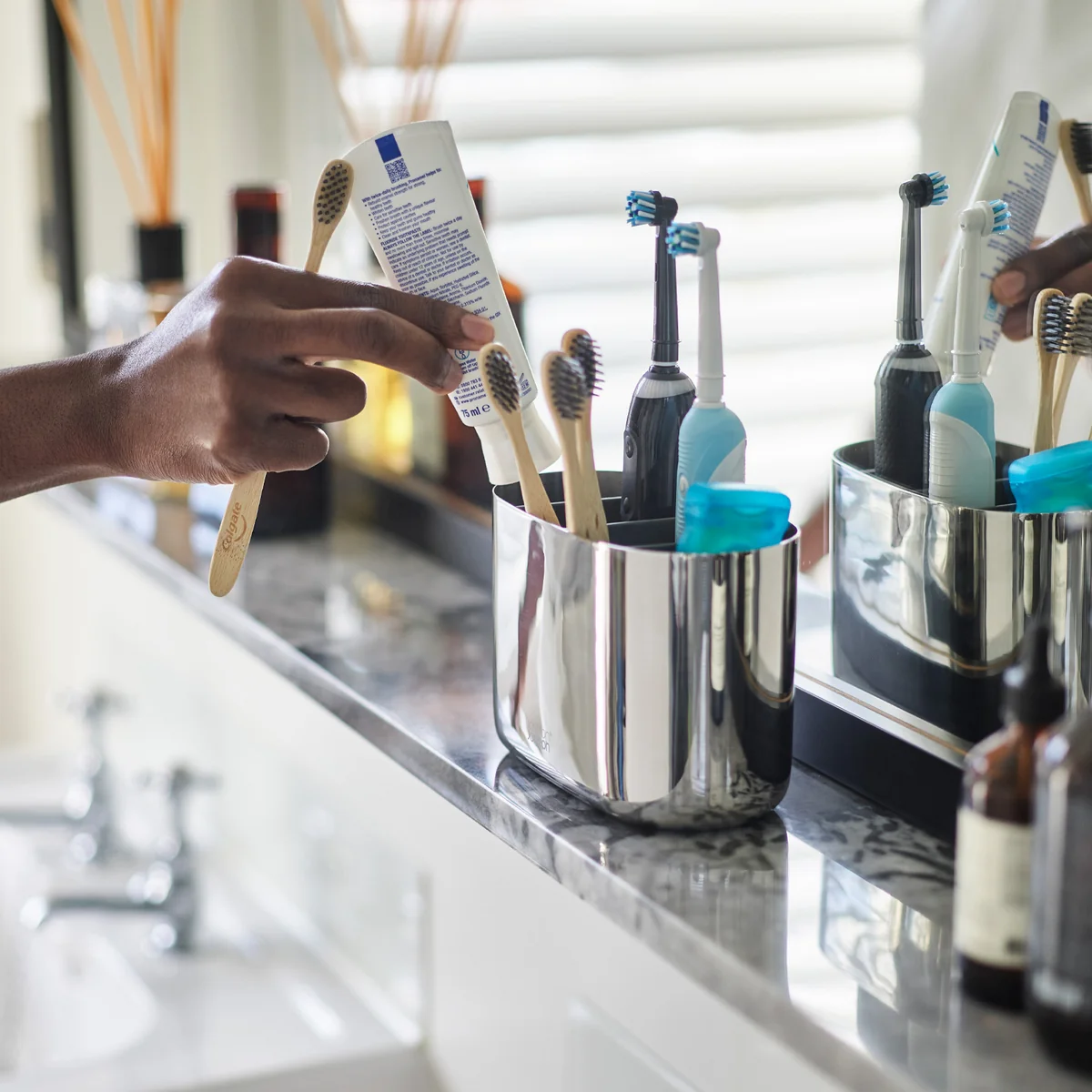Zahnbürstenhalter aus Stahl mit Trennwand