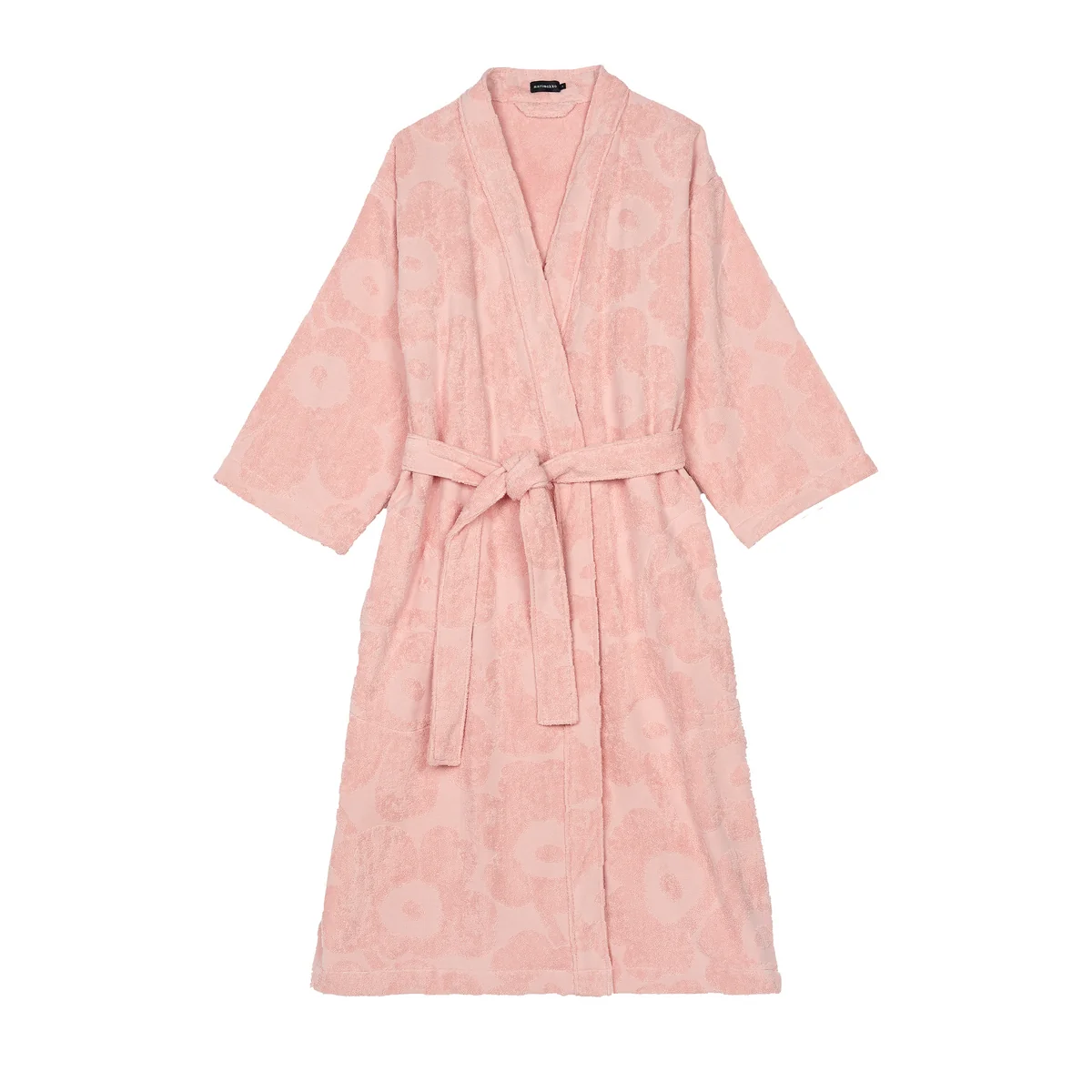 Der Unikko Bademantel aus dem finnischen Hause Marimekko ist mit seiner samtig weichen Haptik unverzichtbar für die heimischen Spa-Momente! Er wird aus Bio-Baumwollfrottee gefertigt und wird mit dem Pieni Unikko-Muster verziert. Der Bademantel verfügt über große Taschen auf der Vorderseite und einen - bei Bedarf - abnehmbaren Gürtel.