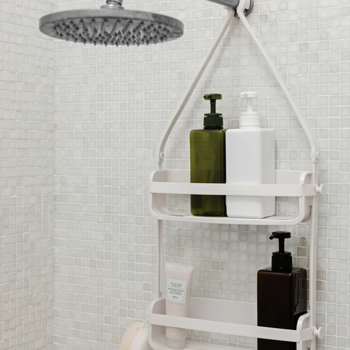 Die Flex Duschablage von Umbra ist ein hochfunktioneller Caddy für die Dusche. Flex wurde entwickelt, um in der Dusche möglichst wenig Platz zu beanspruchen und dennoch größere Flaschengrößen unterzubringen. Die Duschablage besteht aus einem starren Kunststoffrahmen und ist mit flexiblen Silikonbändern ausgestattet, die eine Vielzahl von Aufbewahrungsmöglichkeiten bieten. Die Ablage verfügt außerdem über extra breite Kunststoffablagen, auf denen Shampoo, Spülung und Körperpflegemittel Platz finden, während die Haken perfekt für Schwämme und Rasierklingen geeignet sind.