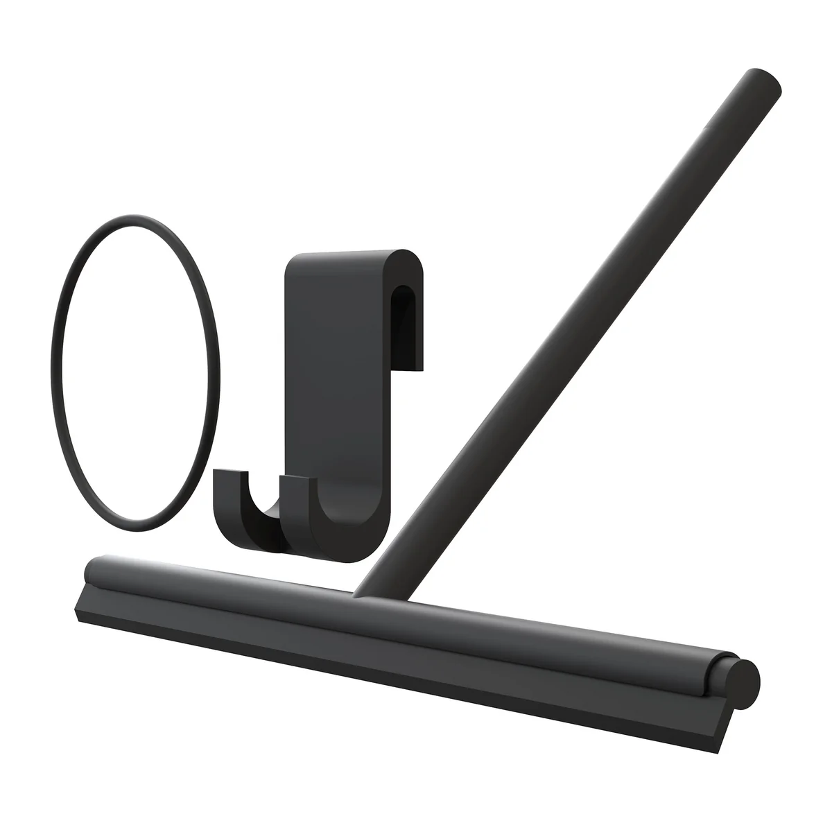 Ein schwarzer Gummiring lässt sich an den Badarmaturen anbringen und der Abzieher ist nach einer wohltuenden Dusche sofort griffbereit.