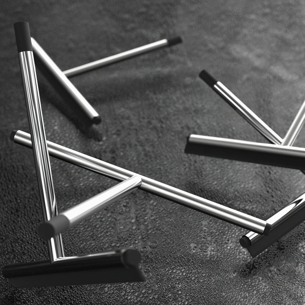 Das Designstudio Bønnelyked MDD hat für Frost einen Duschabzieher entworfen, der sich nicht verstecken muss: das schlanke Design und hochwertige Material ist mit verschiedenen Aufbewahrungsmöglichkeiten erhältlich. In gebürstetem oder poliertem Edelstahl mit schwarzem Silikongummi.