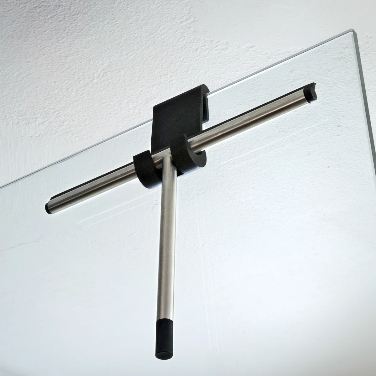 Aber auch die unkomplizierte Anbringung an der Duschkabine ist dank eines Gummihakens möglich. So dient die Platzierung gleich als dekorativer Denkzettel und die Glasfläche wird nach jeder Dusche vom Wasser befreit.