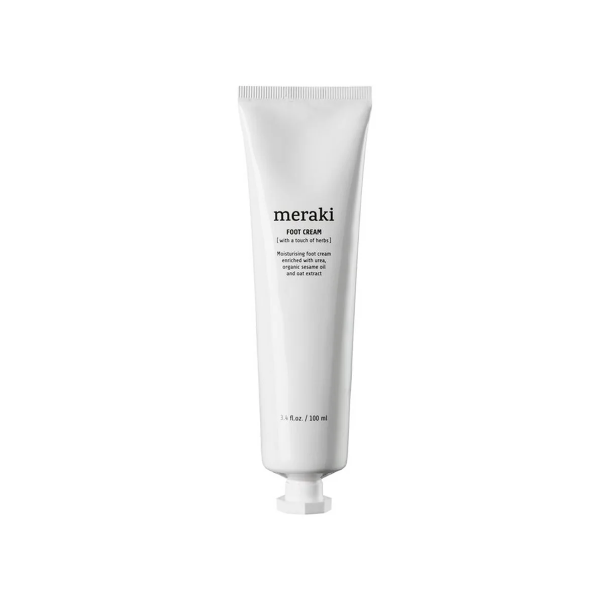Diese wohltuende Fußcreme von Meraki verwöhnt die Füße intensiv. Mit Urea, Bio-Sesamöl und Haferextrakt pflegt sie trockene Haut und spendet nachhaltige Feuchtigkeit. Der angenehme Kräuterduft sorgt für ein entspannendes Pflegeerlebnis.