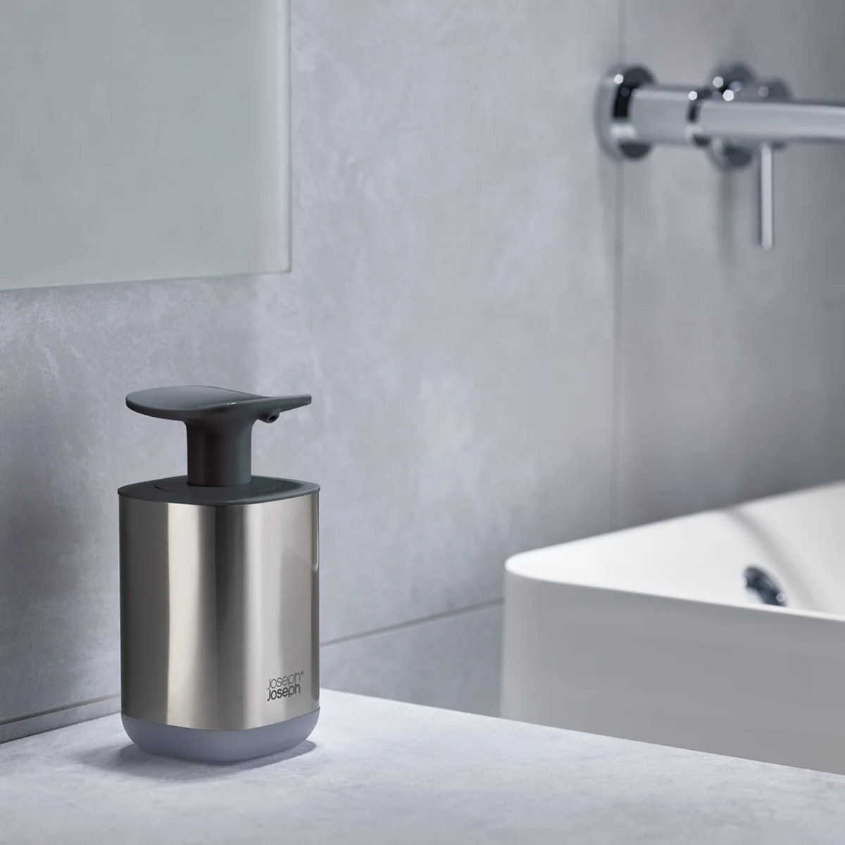 Der Presto Steel Seifenspender von Joseph Joseph besitzt einen besonders großen Pumpkopf, der die Bedienung mit dem Handgelenk oder dem Unterarm ermöglicht. Diese Anwendungsweise ist ist besonders hygienisch und zudem praktisch, falls die Hände einmal besonders schmutzig sein sollten.