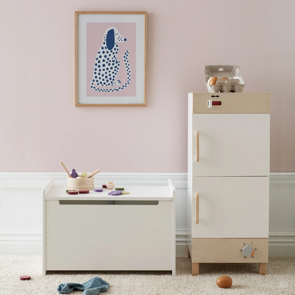 Mit ihrer großzügigen Größe bietet die Truhe genügend Platz für Spielzeug, Kuscheltiere, Bücher und vieles mehr. Ihr zeitloses Design fügt sich nahtlos in jedes Kinderzimmer ein und kann sogar als zusätzliche Sitzgelegenheit oder als Dekorationselement verwendet werden.