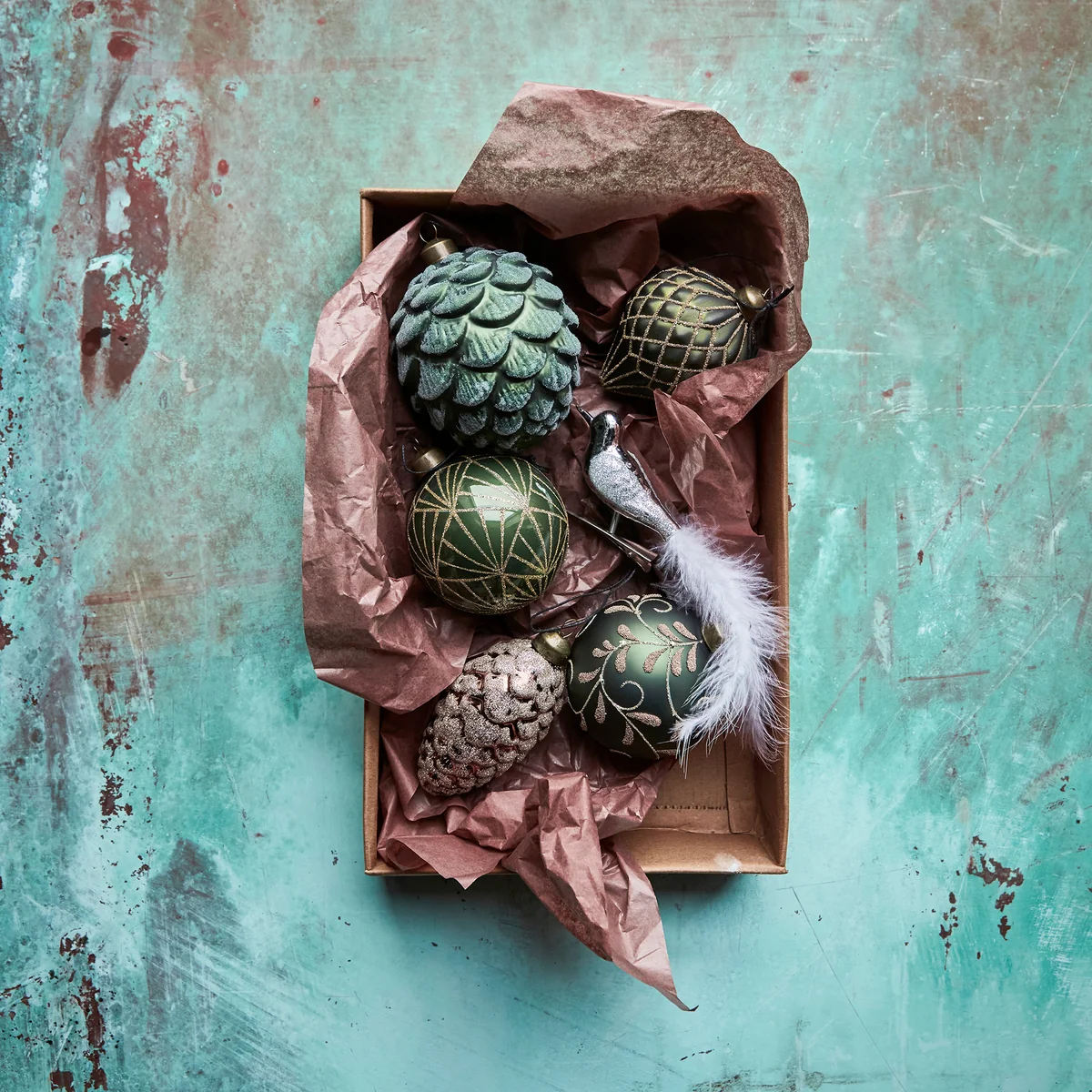Das Groc Ornament von House Doctor präsentiert sich in einer schönen schneebedeckten Zapfenform. Die Ornamente fügen sich in jede Weihnachtseinrichtung ein und sorgen für einen Blickfang an jedem Christbaum. Die Groc Ornamente können mit unterschiedlichen Formen, Farben und Materialien kombiniert werden.