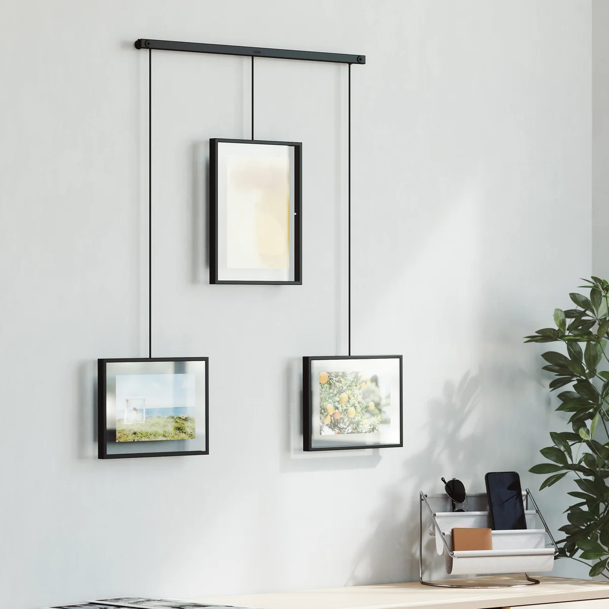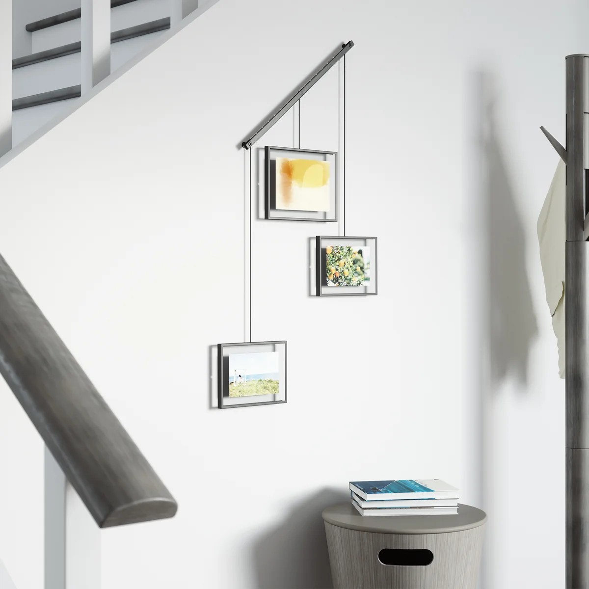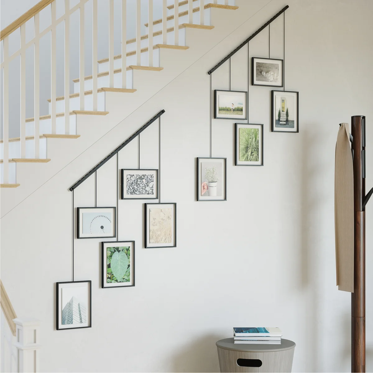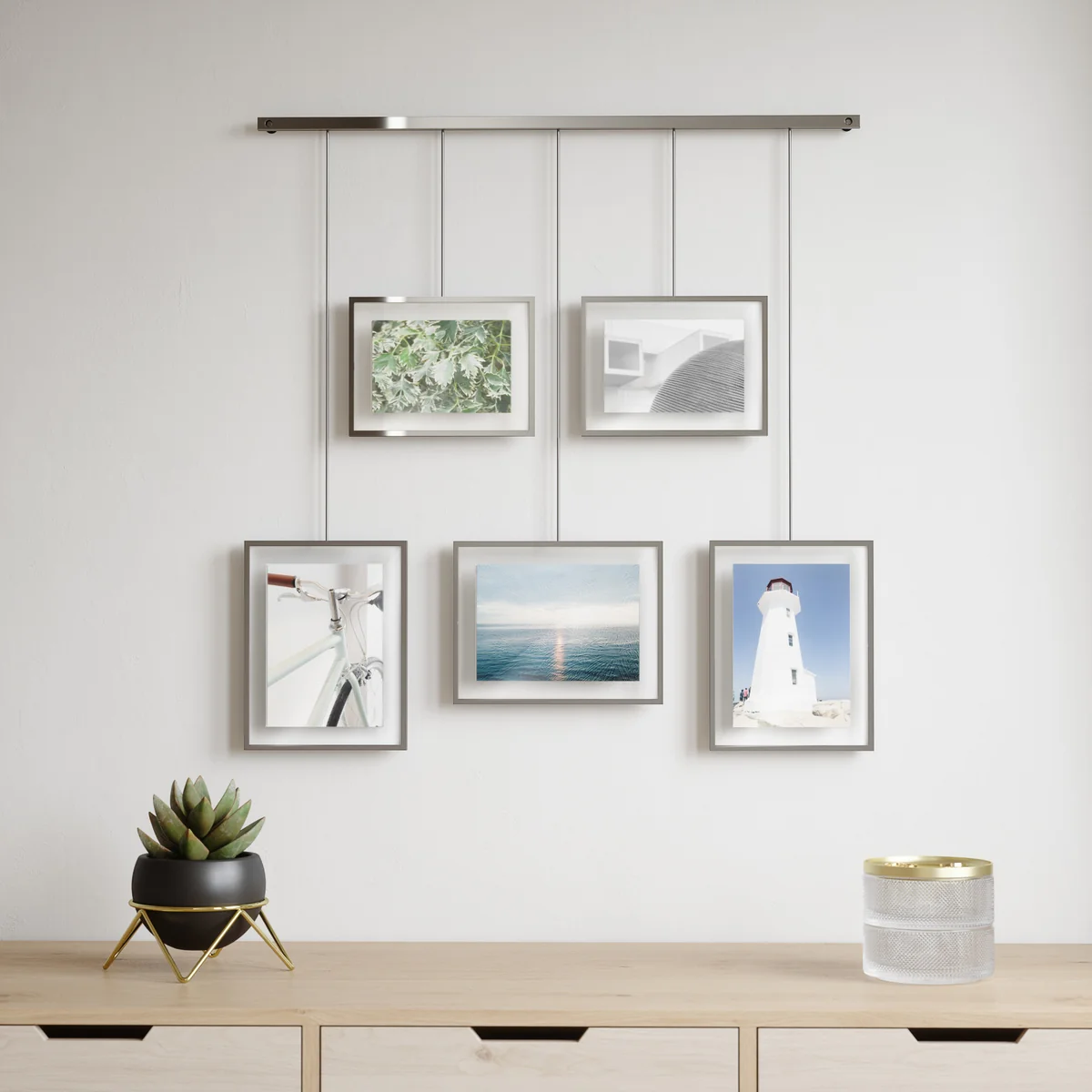 Der Exhibit Bilderrahmen von Umbra passt sich den verschiedensten Layout-Präferenzen an. Die Rahmen können entlang der Metallleiste verschoben und in eine Quer- oder Hochformatausrichtung gedreht werden. In die fünf unterschiedlich großen Bilderrahmen passen alle möglichen Lieblingsfotos, Kunstwerke und Illustrationen. Die Design-Bilderrahmen dienen auch als schöne und auffällige Wanddekoration für das Wohnzimmer oder den Flur.