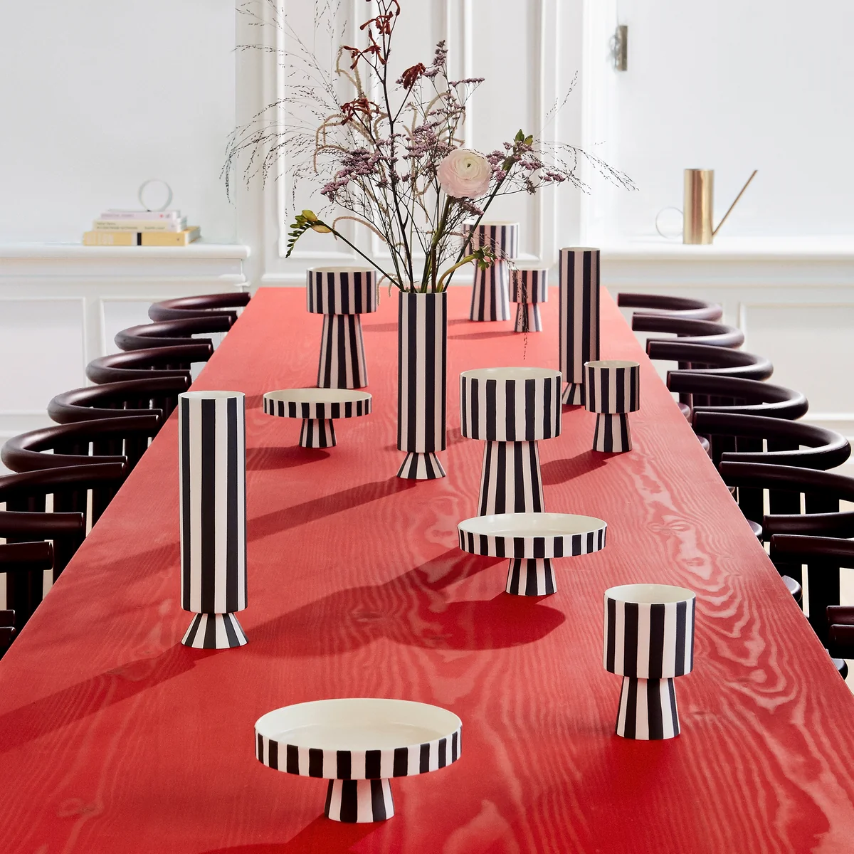 Der Toppu Übertopf von OYOY setzt Blumen und Pflanzen gekonnt in Szene. Sein Streifenmuster setzt stilvolle und grafische Akzente im Wohnbereich und ist auch ohne Bepflanzung ein dekorativer Hingucker im Regal oder auf dem Beistelltisch. Die außergewöhnliche, geometrische Form hilft dabei Pflanzen und Blumen auf elegante und moderne Weise zu präsentieren.
