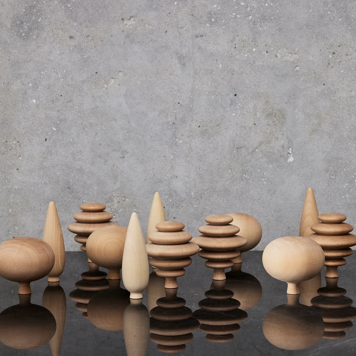 Erhältlich sind die Figuren in verschiedenen Formen, zum Beispiel als Kastanie oder Zypresse. Hinter dem Entwurf steckt die Designerin Amalie Kallesøe Bergholdt.
