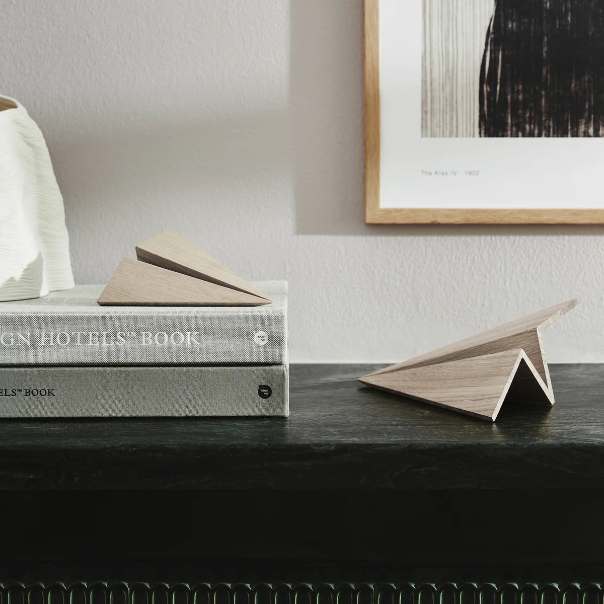 Das Maverick Holz-Flugzeug von Jakob Burgsø für den dänischen Hersteller boyhood erinnert an simpel gefaltete Papierflieger. Im Gegensatz zu ihnen ist das Maverick Flugzeug jedoch eine stetige Wohndekoration, die weder knittert noch in der hintersten Ecke des Zimmers landet. Gefertigt aus massiver Eiche ist es überaus stabil, hält ideal seine Form und kann wunderbar in jeglichen Zimmern auf Kommoden, Beistelltischen und co platziert werden.