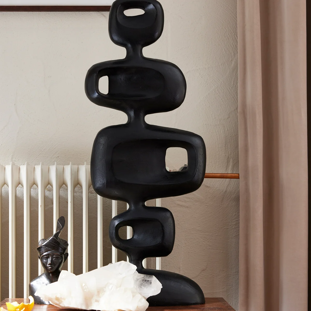 Die Aluminium Skulptur aus dem niederländischen Hause HKliving verleiht mit ihrer auffälligen Optik einen charaktervollen Blickfang im Wohninterieur. Die Skulptur wird aus dunklem Aluminium gefertigt und besticht insgesamt mit ihrer verspielten Form. Sie kann wunderbar in jeglichen Wohnbereichen platziert werden - im Wohnzimmer, Schlafzimmer oder ganz präsent im Eingangsbereich.