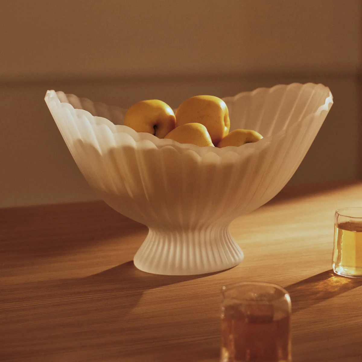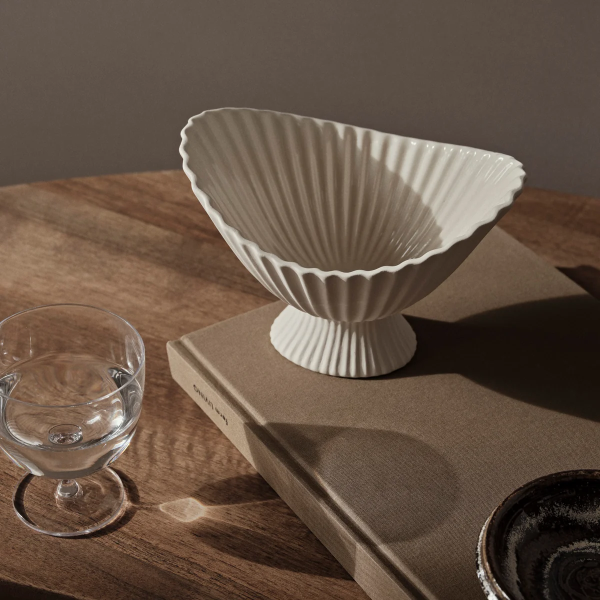 Die Fontain Dekoschale von Ferm Living ist ein skulpturales Designstück aus Keramik, das die Aufmerksamkeit unmittelbar auf sich zieht. Die Schale verfügt über eine edle Erhöhung, die die weiche und gefaltete Optik sehr schön zur Schau stellt. Die Form der Schale ist inspiriert von der Form eines klassischen Brunnens und kann mit schönen Blumendetails gestaltet werden, sodass sie als dekorative und grazile Ergänzung den Tisch ziert.
