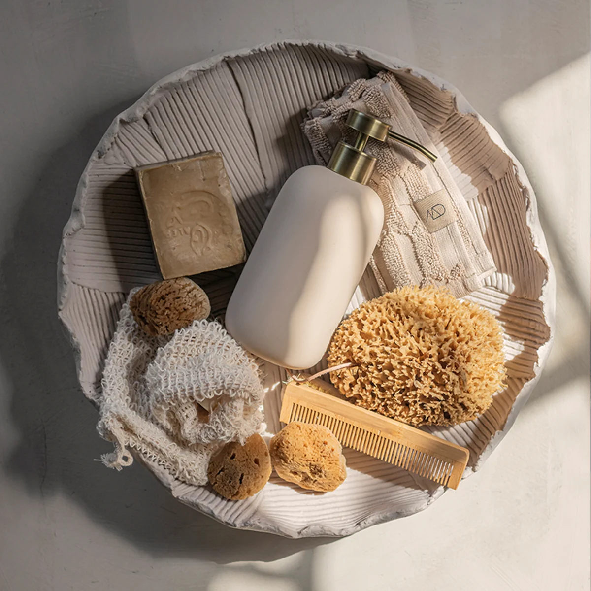 Dekorative Schale mit Rillen aus Steinharzmaterial