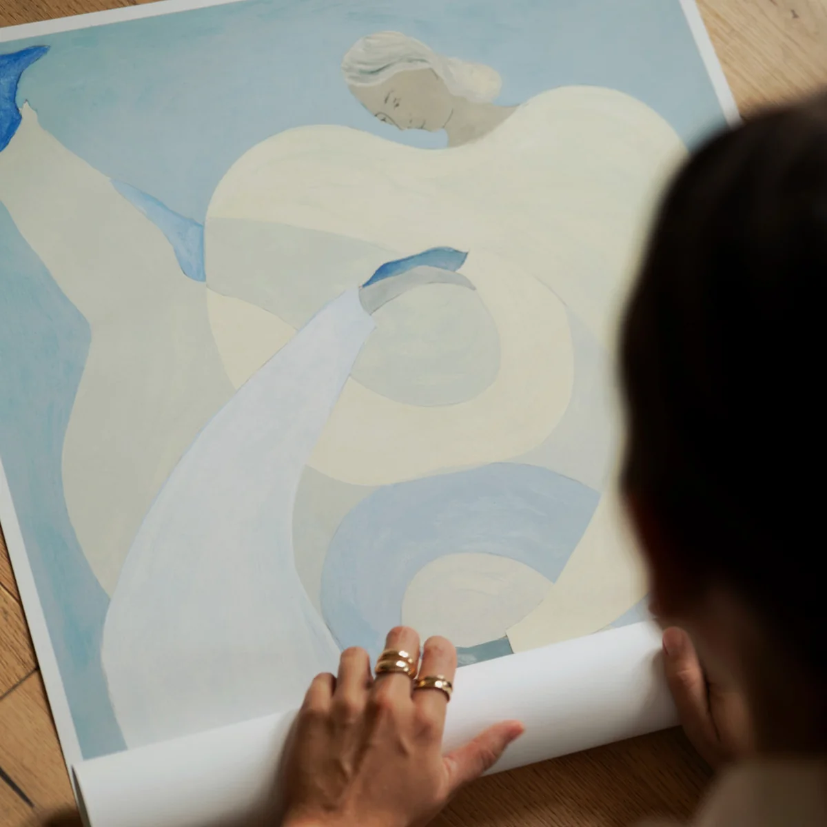 Der Hold You - Blue Fine-Art-Giclée-Druck von Sofia Lind für The Poster Club begeistert mit seiner großartigen Drucktechnik. Das dynamische Motiv besticht hierbei mit seiner Tiefe an intensiven Farbnuancen. In Verbindung mit dem hochwertigen Naturpapier, werden die Archivierung der Farben und eine maximale Langlebigkeit garantiert.