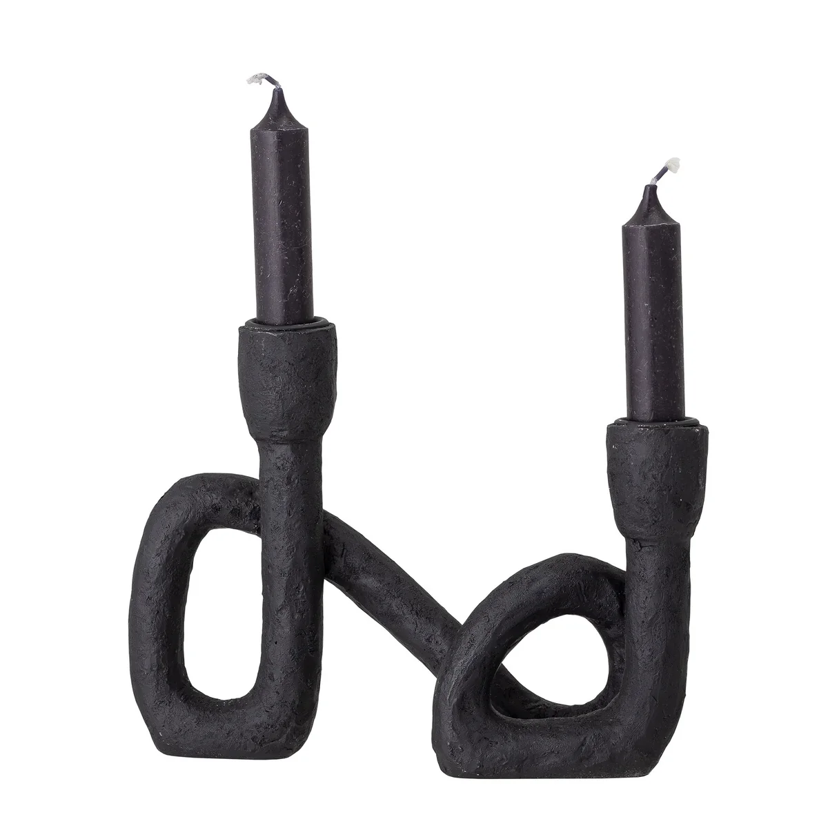Der Mashel Kerzenhalter von Bloomingville hebt sich von der Masse ab: Das verdrehte Design und die zusammenhängende Form geben diesem Kerzenhalter ein unverwechselbares Aussehen und machen ihn zu einer Dekoration für sich selbst. Gefertigt aus Polyharz und schwarz gefärbt kontrastiert das Design-Objekt gut mit hellen und farbigen Kerzen, beispielsweise auf dem Esstisch oder einem Couchtisch.