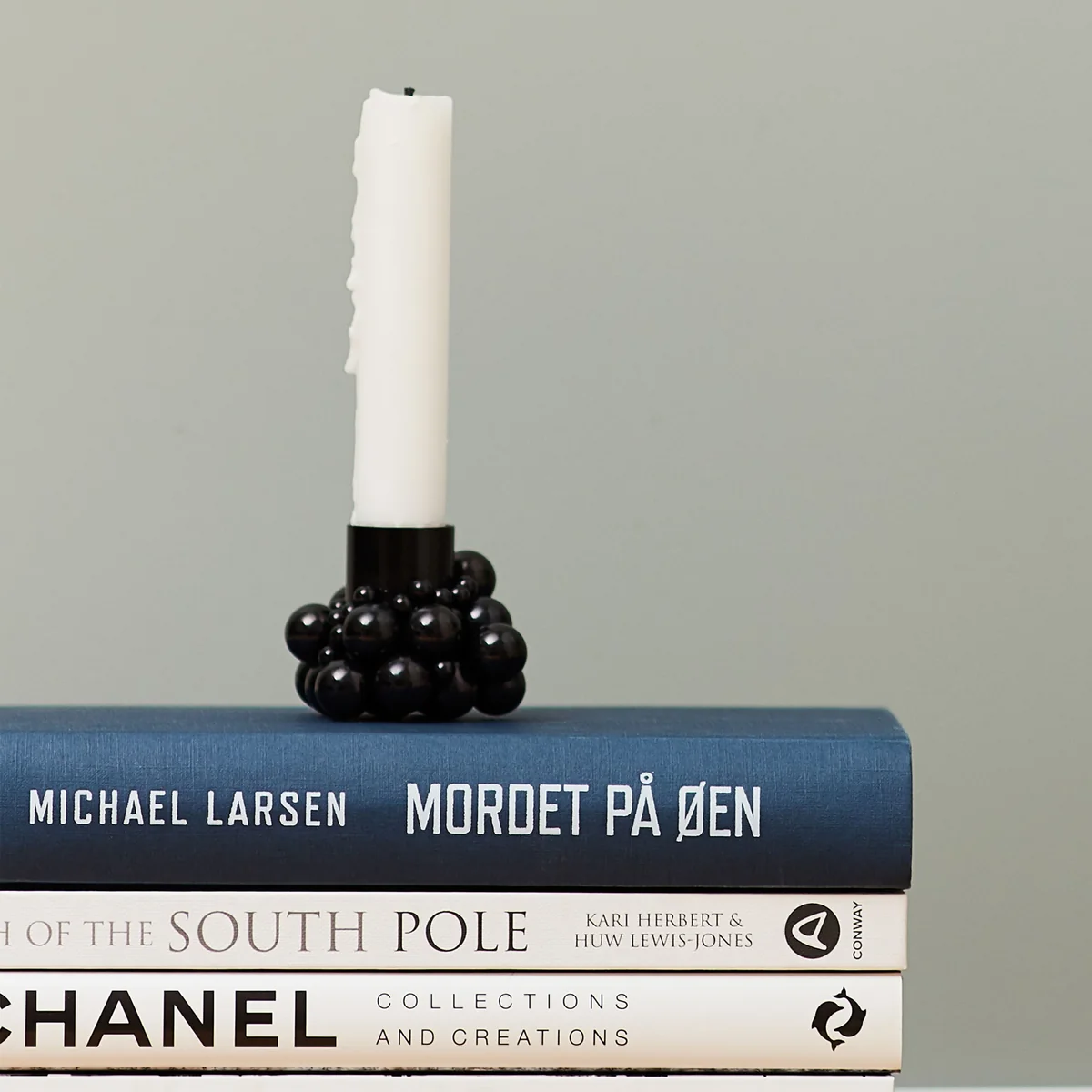 Der Molekyl Kerzenhalter besteht aus einem Metallrohr für die Stabkerze, einer Magnetkugel sowie zahlreichen Stahlkugeln und ist ein einzigartiges Dekorationsobjekt, das mit Materialien, Formen und Individualität spielt. Das endgültige Design von Molekyl ist unvollendet und wird vom Nutzer persönlich bestimmt.