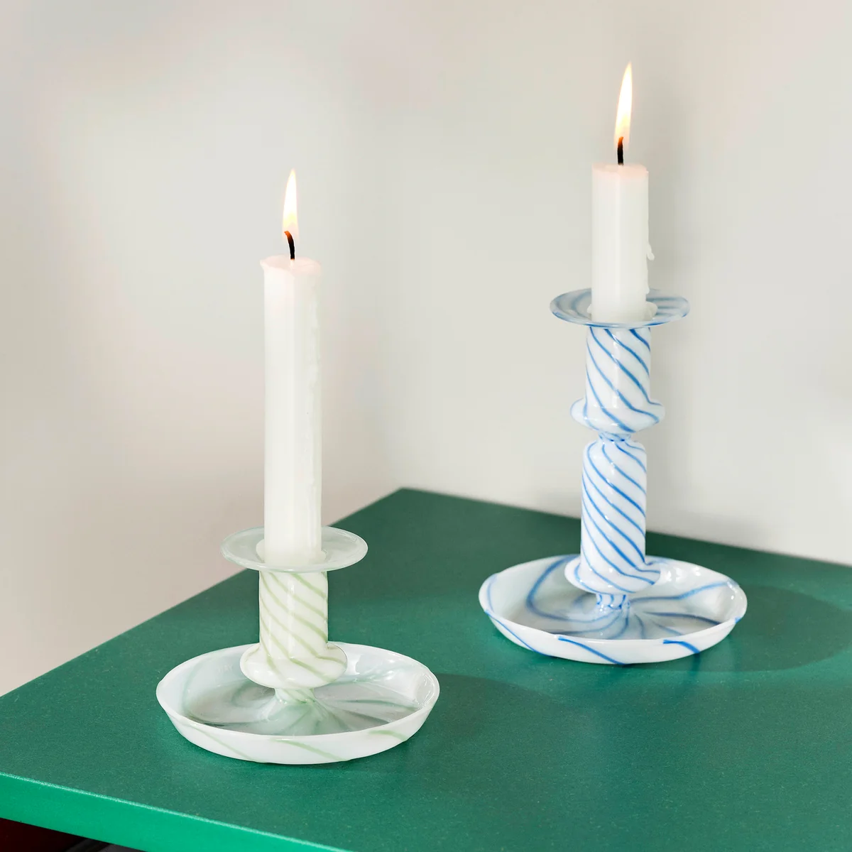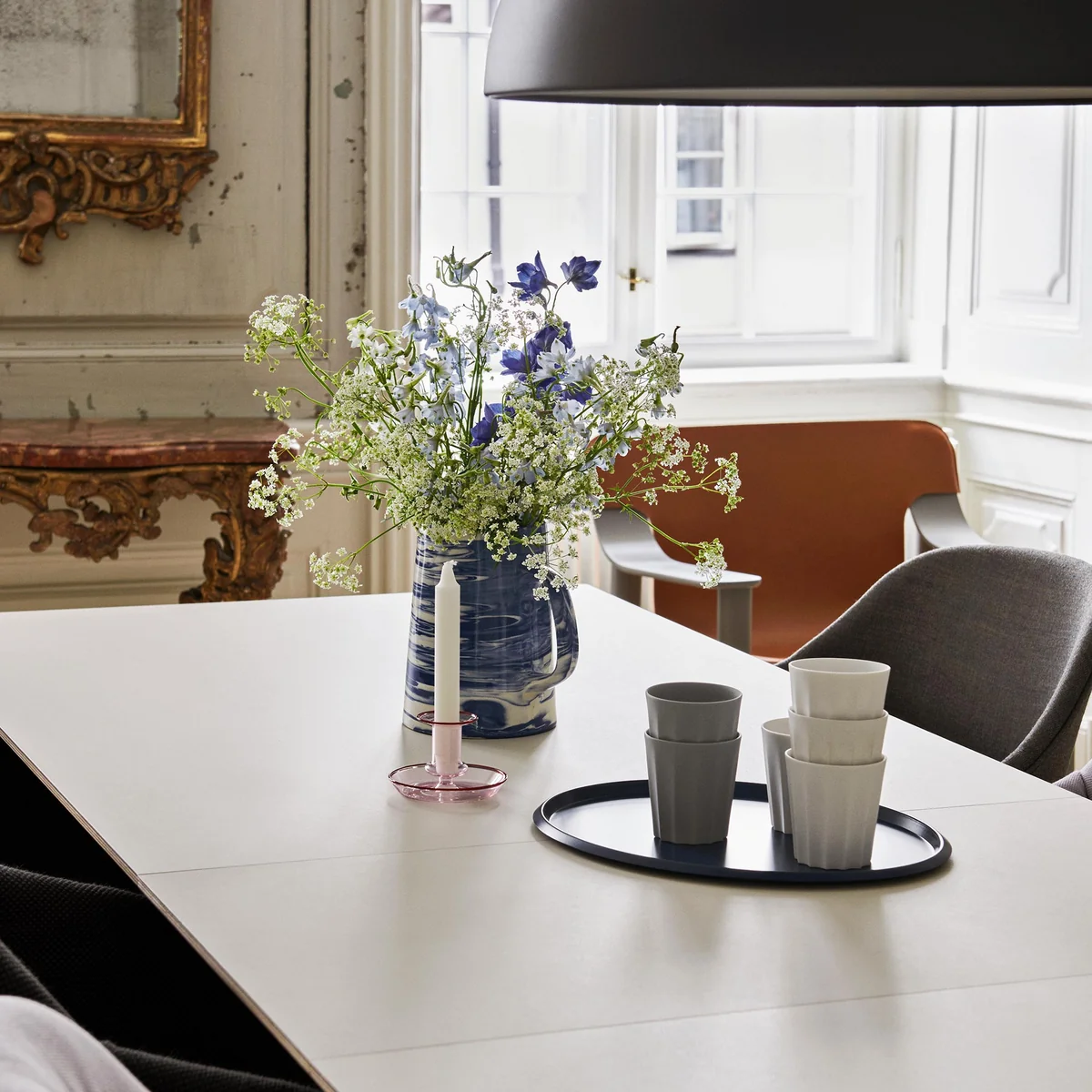 Der Flare Kerzenhalter von HAY zeichnet sich durch seine klassische Form aus und überzeugt durch sein semi-transparentes, farbiges Borosilikatglas. Akzente werden durch den etwas dunkler getönten Rand gesetzt, der einen tollen Kontrast zu dem blass gefärbten Glas aufweist. Auf dem großzügigen Rand lassen sich zum Beispiel abgebrannte Streichhölzer ablegen.