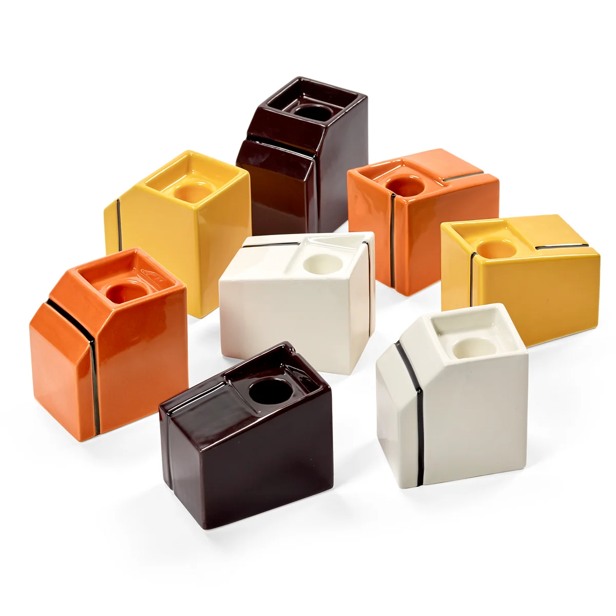 Die Silos Kerzenhalter von Serax, entworfen von Plan C, bringen industrielle Inspiration in eine neue, künstlerische Form. Gefertigt aus Porzellan, überzeugen sie mit klaren, geometrischen Linien, die durch verspielte Farben und markante Formen aufgelockert werden. So entsteht ein Designobjekt, das Funktion und Ausdruckskraft miteinander verbindet. Ob auf dem Esstisch, Sideboard oder als dekorativer Akzent im Wohnzimmer – die Silos Kerzenhalter schaffen eine auffällige Atmosphäre und verkörpern zugleich den rebellischen, kreativen Geist von Plan C.