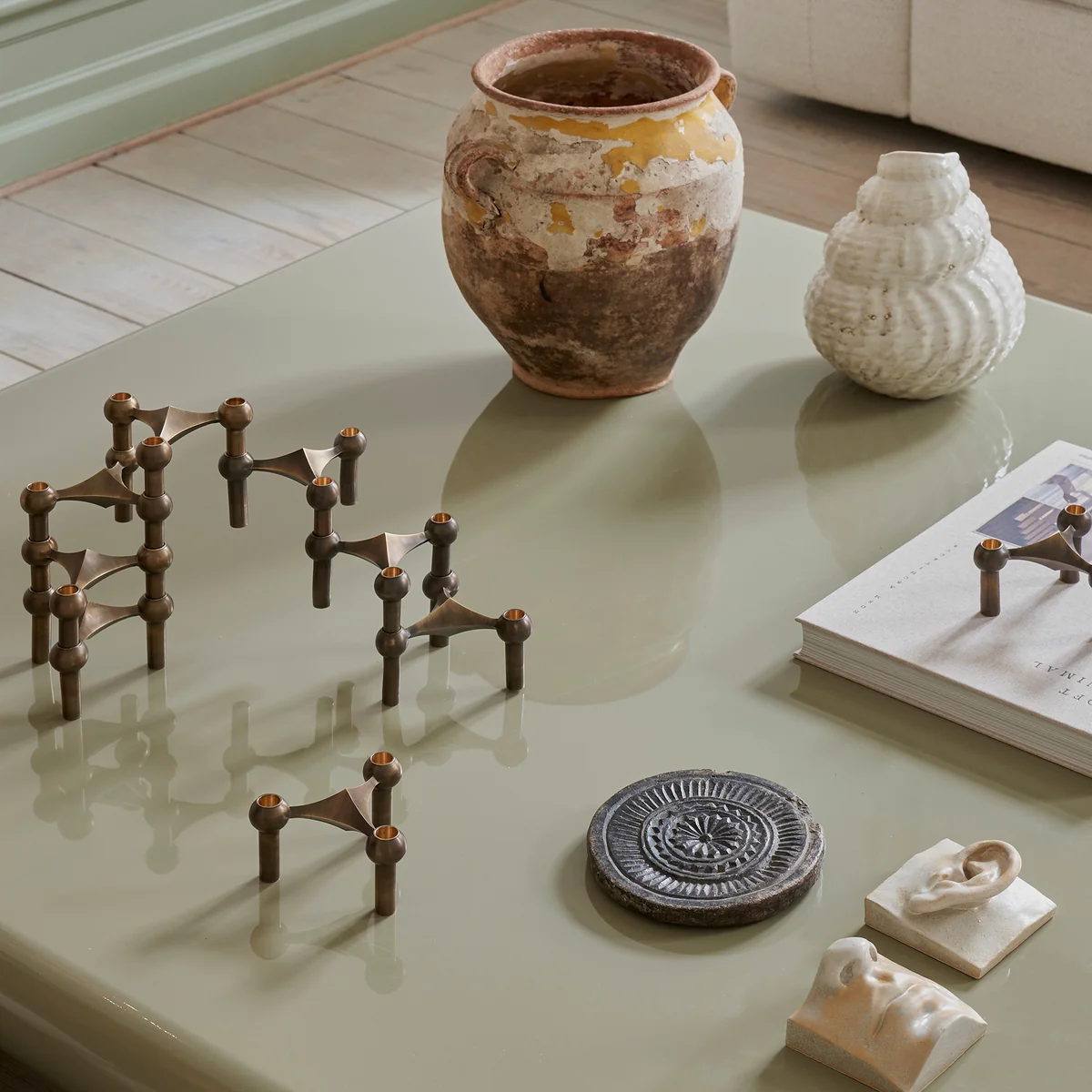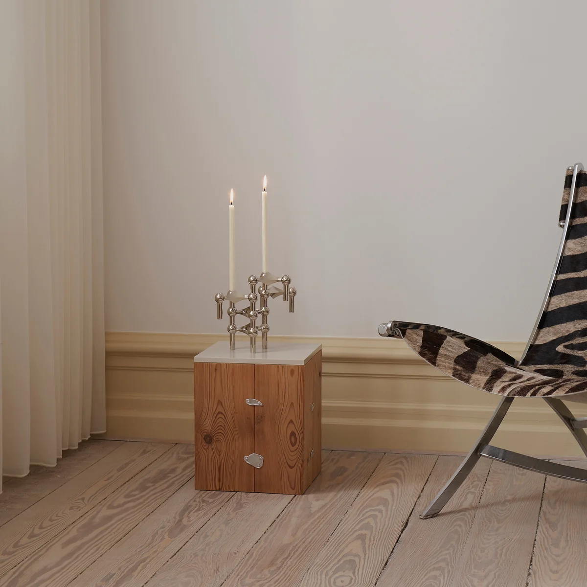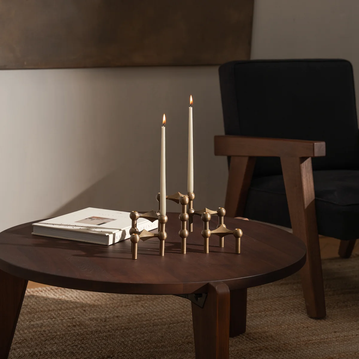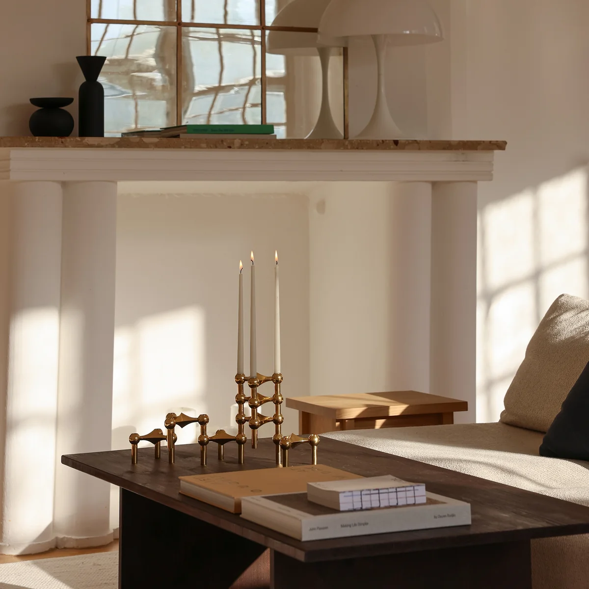 Der klassische Stoff Nagel Kerzenhalter ist eine Design-Ikone aus den 60er Jahren. Der stapelbare Kerzenhalter aus Messing, Chrom oder in mattem Schwarz wird nach Original-Entwürfen gefertigt und begeistert mit seinem zeitlosen Design und seiner unglaublichen Vielfältigkeit.