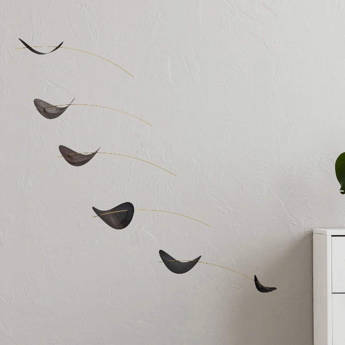 Gefertigt ist das Mobile aus finnischem Holz, was dem Mobile eine skandinavische Note verleiht und zum Träumen einlädt. Erhältlich in zwei Farben.
