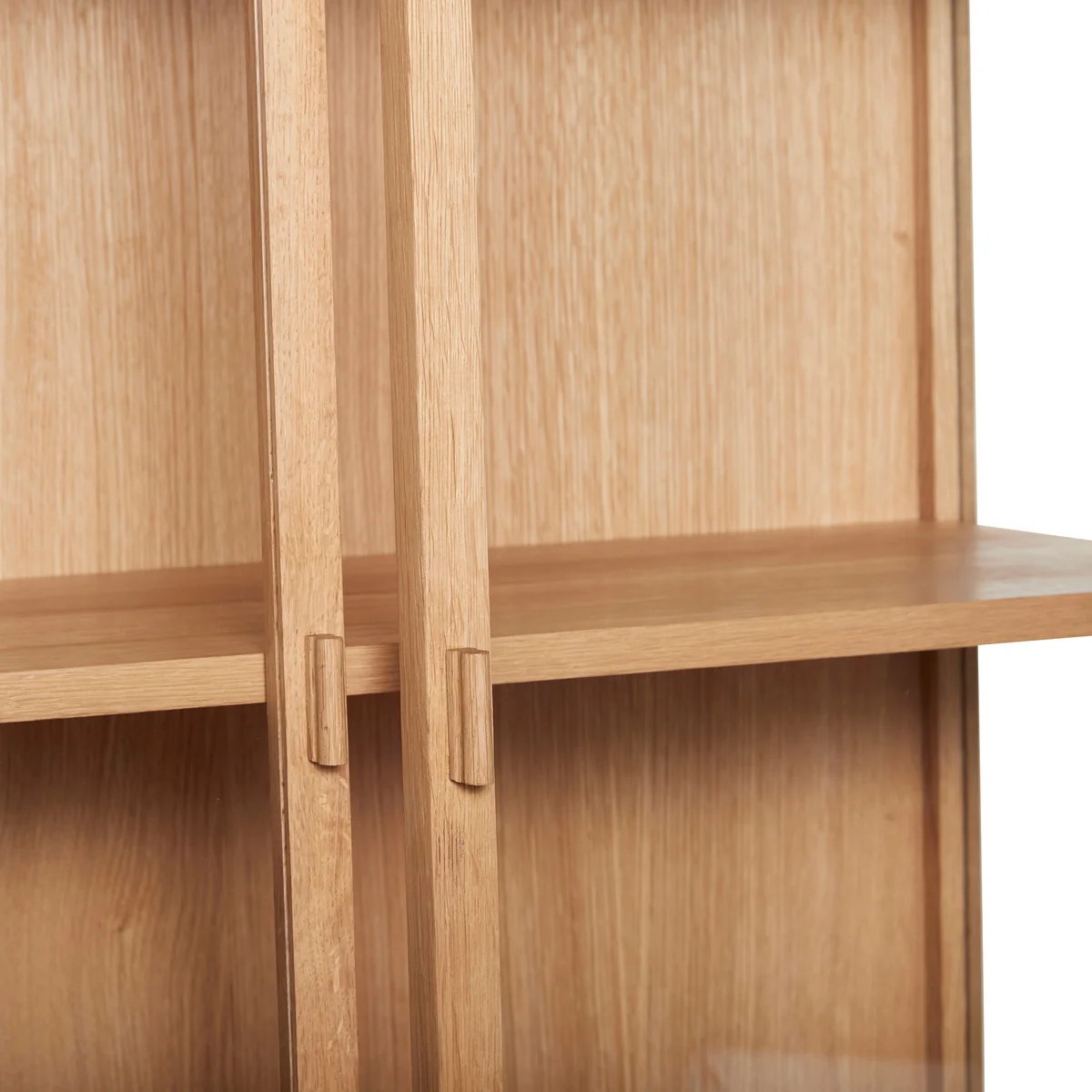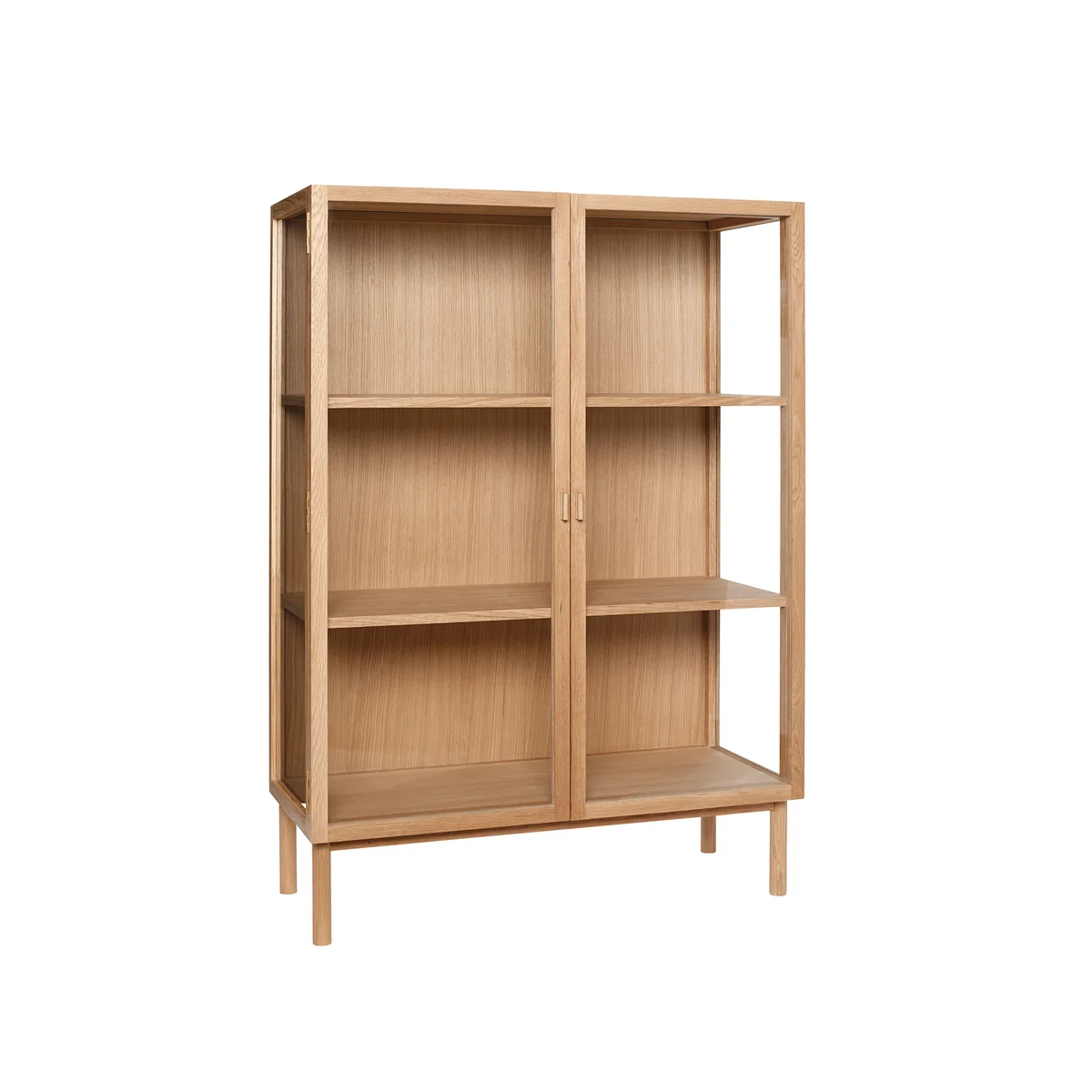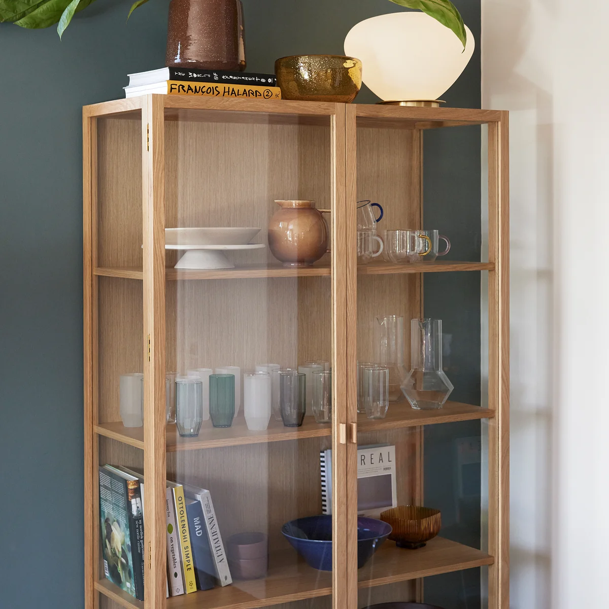 Die Hübsch Interior Panorama Vitrine ist ein herausragendes Möbelstück, das sich durch seine natürliche Schönheit, Langlebigkeit und Stabilität auszeichnet. Die Glasfronten und -seiten der Vitrine sind in der Regel aus gehärtetem Glas gefertigt, um die Sichtbarkeit und den Schutz der ausgestellten Objekte zu gewährleisten.