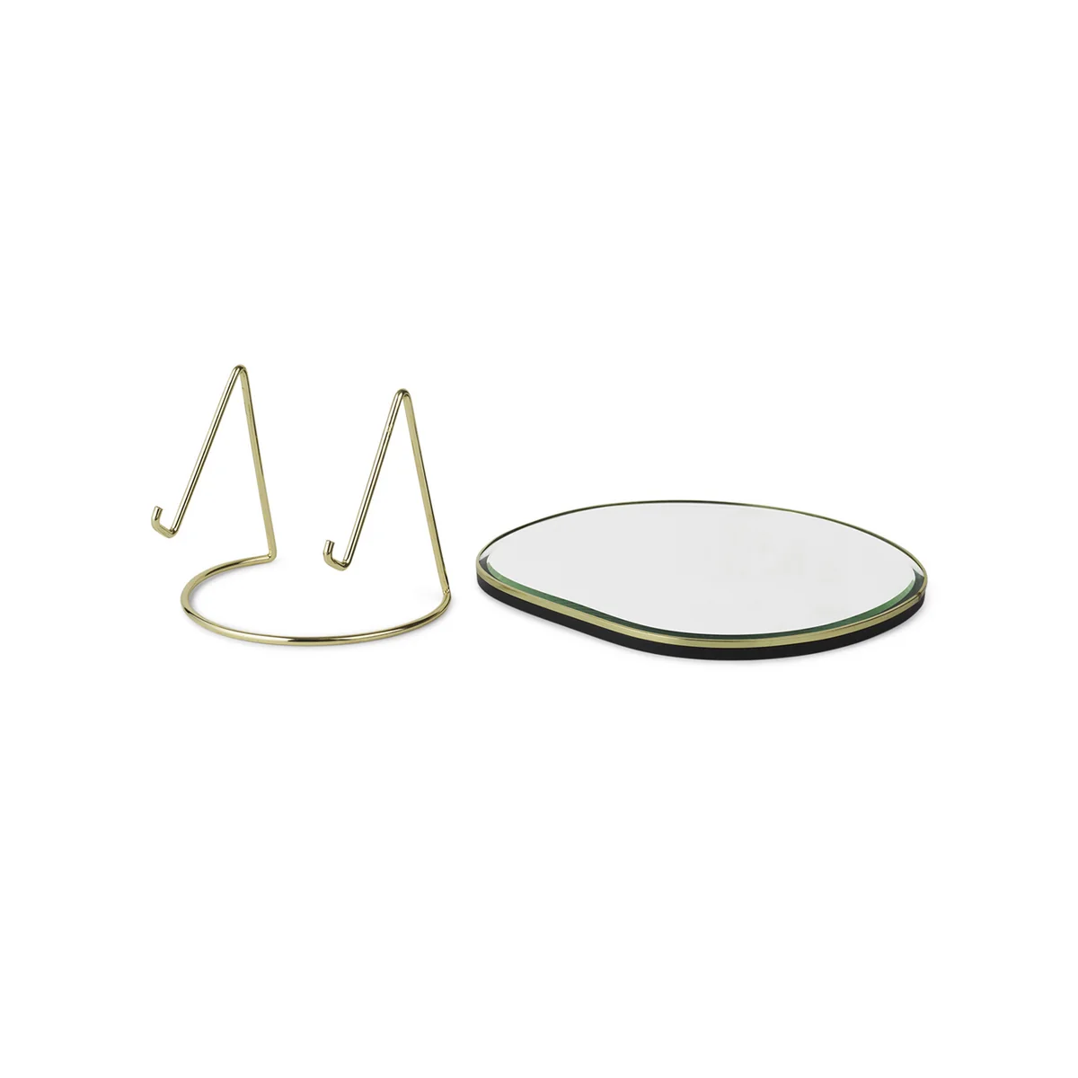 Der Pond Tischspiegel von Ferm Living wurde von frei fließenden Wasserbewegungen inspiriert und ist mit seinem asymmetrischen organisch geformten Umriss eine moderne Alternative zu klassischen Tischspiegeln.