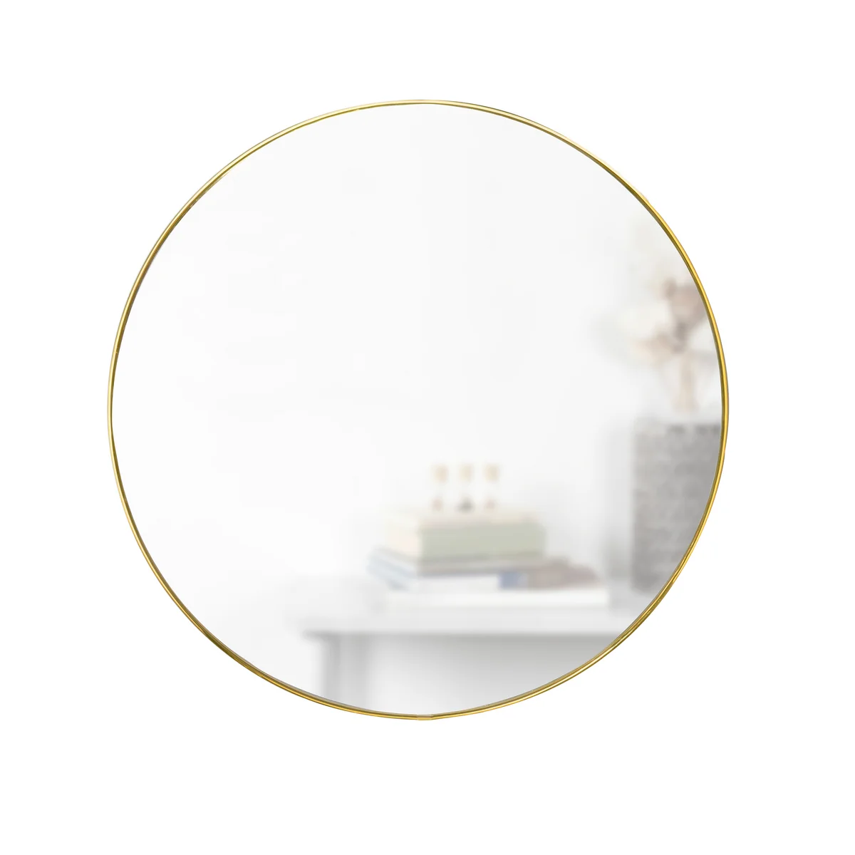 Hubba's schöne Form und der Rahmen aus Messing oder Titan lassen den Spiegel zur Wanddekoration werden. Das gespiegelte Licht lässt jeden Raum zudem optisch größer und heller erscheinen.