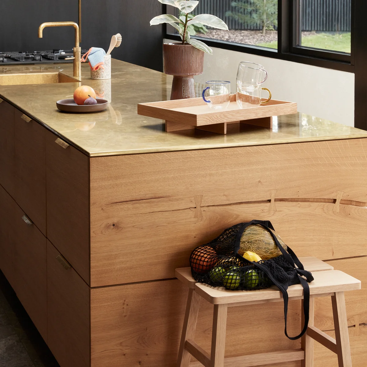 Hübsch Interior stellt das Tablett aus natürlich lackiertem Eichenholz her, welches aus FSC®-zertifizierten Wäldern stammt.