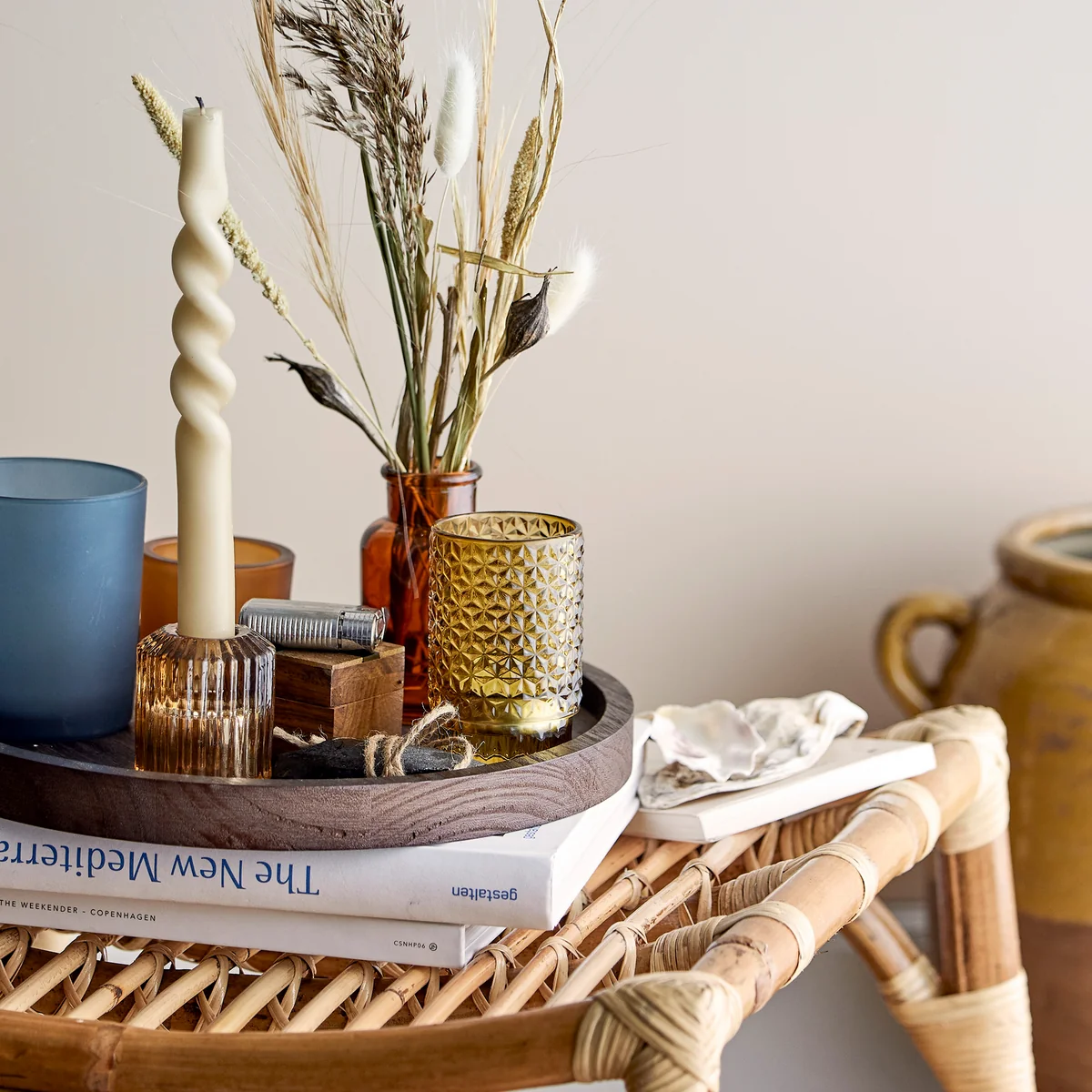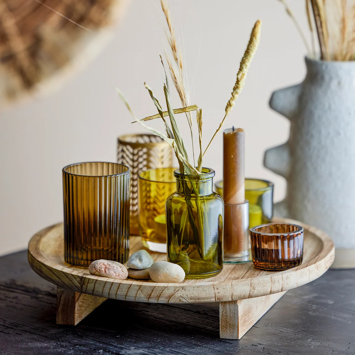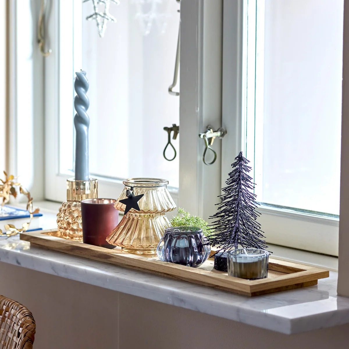 Das Sanga Tablett von Bloomingville ist ein wunderschönes Holztablett, das mit dekorativen Teelichthaltern und einer Tannenfigur geziert ist. Ergänzt mit kleinen Teelichtern, verbreitet das Tablett eine warme und gemütliche Ambiente. Das Kerzenlicht sorgt für eine heimische Stimmung, die gezielt in die kälteren Monate einleitet. Auf der Kommode, dem Esstisch oder der Fensterbank, macht das Tablett eine atemberaubende Figur.