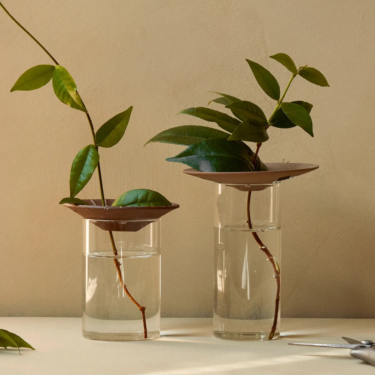 Die Cresco Propagation Vase des skandinavischen Herstellers Audo begeistert mit seinem schlichten, minimalistischen Design. Die Vase aus Glas und Steinzeug ist im 2er-Set erhältlich und eignet sich hervorragend für die Vermehrung von Pflanzenstecklingen oder die Aussaat größer Samen oder Blumenzwiebel. Cresco bietet optimalen Platz für den Wachstum der Wurzeln.