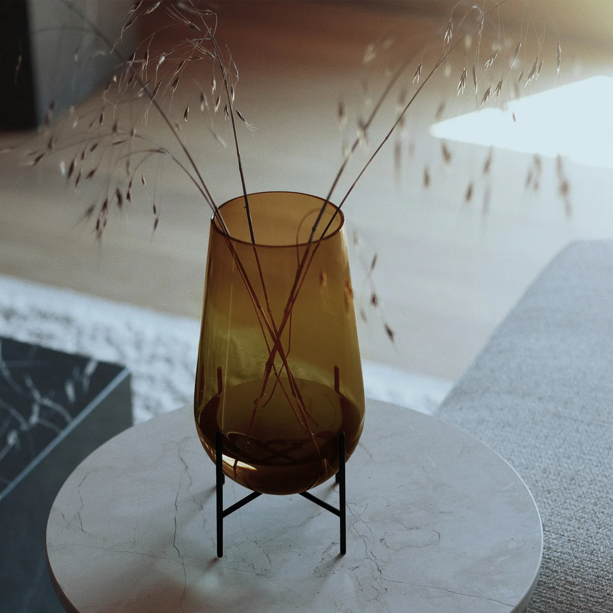 Die deutsche Designerin Theresa Arns entwarf für Audo eine besondere und einzigartige Vase: die Échasse Vase. Das tropfenförmige mundgeblasene Glas ruht auf einem filigranen Gestell, was für ein besonders edles Gesamterscheinungsbild sorgt.