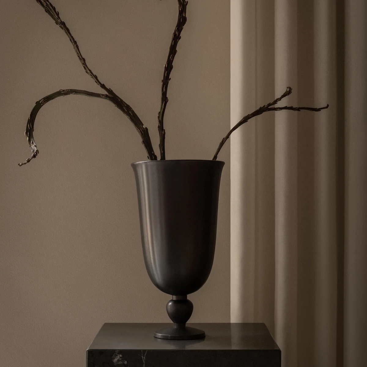 Ob mit üppigen Blumenarrangements oder schlichten Zweigen bestückt – die Pavot Vase setzt stilvolle Akzente auf dem Esstisch, der Konsole oder im Eingangsbereich. Auch als eigenständiges Designobjekt entfaltet sie ihre skulpturale Wirkung.