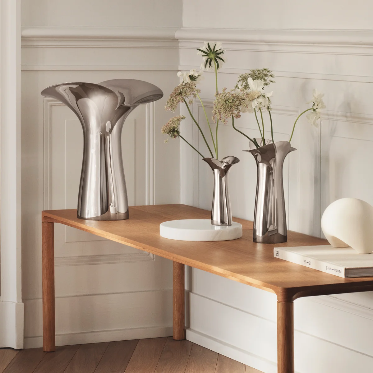 Erhältlich ist die Bloom Botanica Vase von Georg Jensen in verschiedenen Größen, die sich auch untereinander bestens kombinieren lassen.
