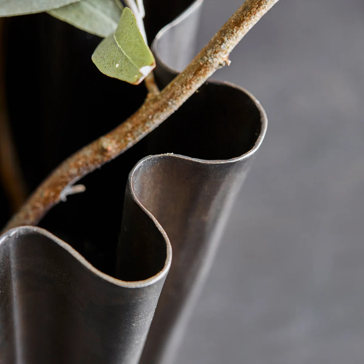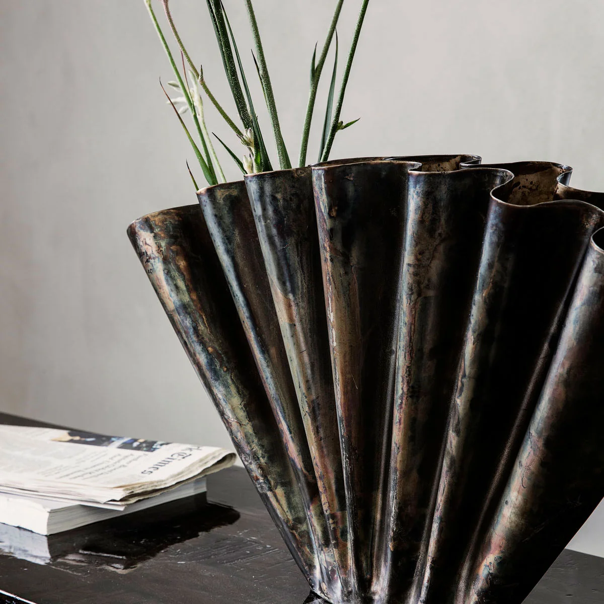 Die Flood Vase von House Doctor überzeugt durch ihre außergewöhnliche Form und das Material im industriellen Look. Die Vase erinnert in ihrer Form an eine Muschel und die Seiten winden sich in Wellenform. Aus Eisen hergestellt, bekommt die Vase ein raues und dekoratives Aussehen, wodurch sie zum Hingucker in jedem Wohnbereich wird.