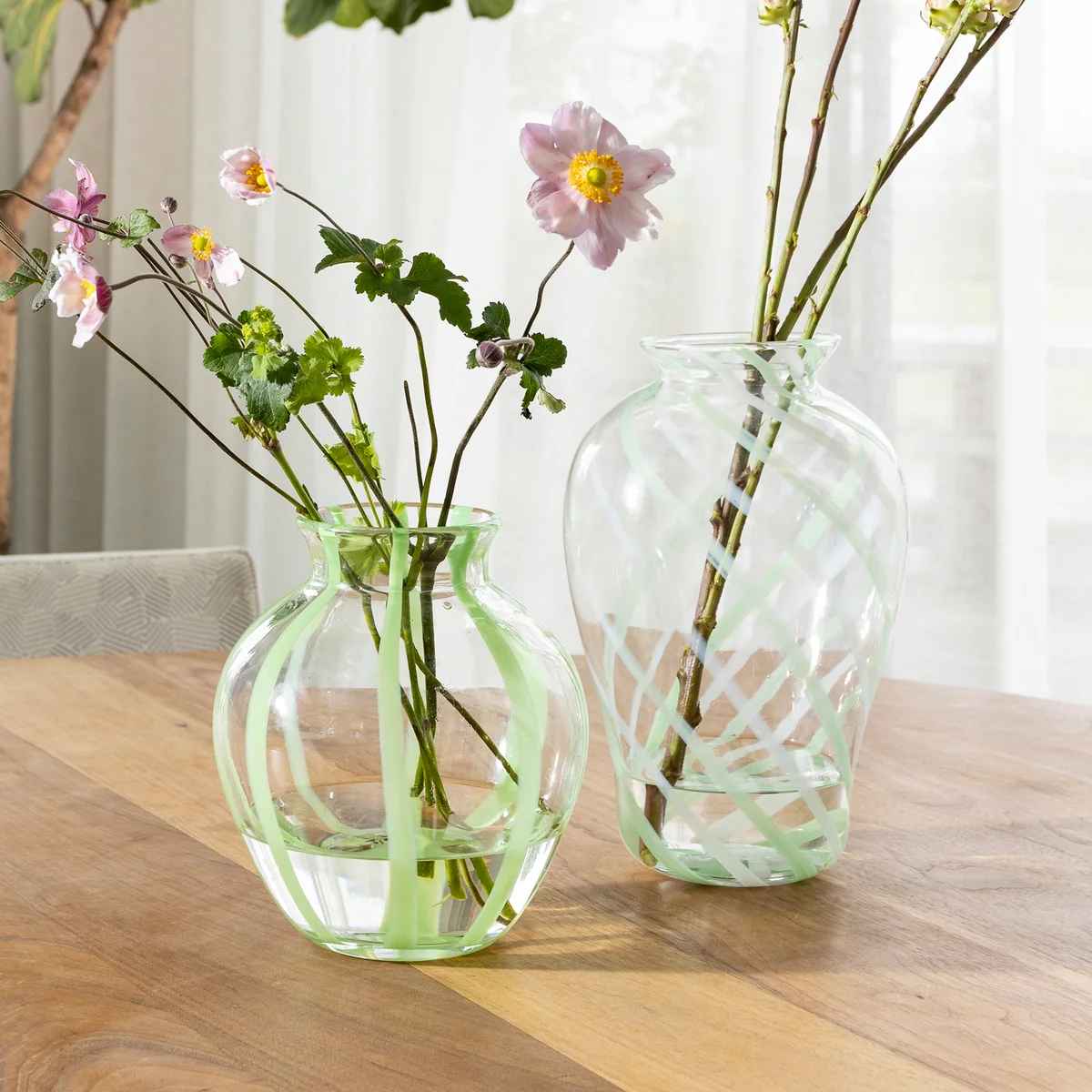 Die Yogu Vase vereint klare Linien mit kunstvollen Wirbeln und ist von klassischen Vasenformen inspiriert. Mundgeblasen aus Sodaglas, bringt sie mit ihren verspielten Spiralen und farbigen Streifen handwerkliche Raffinesse in jedes Interieur. Perfekt zur Präsentation von Blumen oder als eigenständiges Designobjekt. Für einen lebendigen Look lässt sie sich ideal mit weiteren Vasen Yogu-Vasen dieser Kollektion kombinieren. Geliefert in der charakteristischen &klevering-Geschenkbox.
