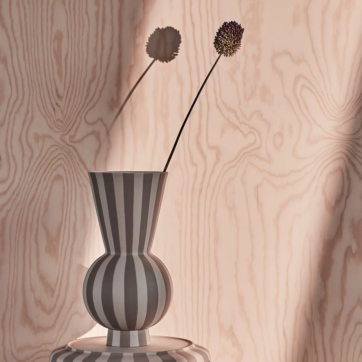 Die Toppu-Serie zeichnet sich durch ein schönes, grafisches und stilvolles Design aus. Die Toppu Vase hilft bei der Präsentation der Pflanzen oder Blumen auf eine sehr ansprechende Art und Weise und ist in verschiedenen Farben erhältlich. Besonders einzelne Blumen und Zweige lassen sich in den schlanken und hohen Vasen mit dem Streifenmuster toll in Szene setzen.