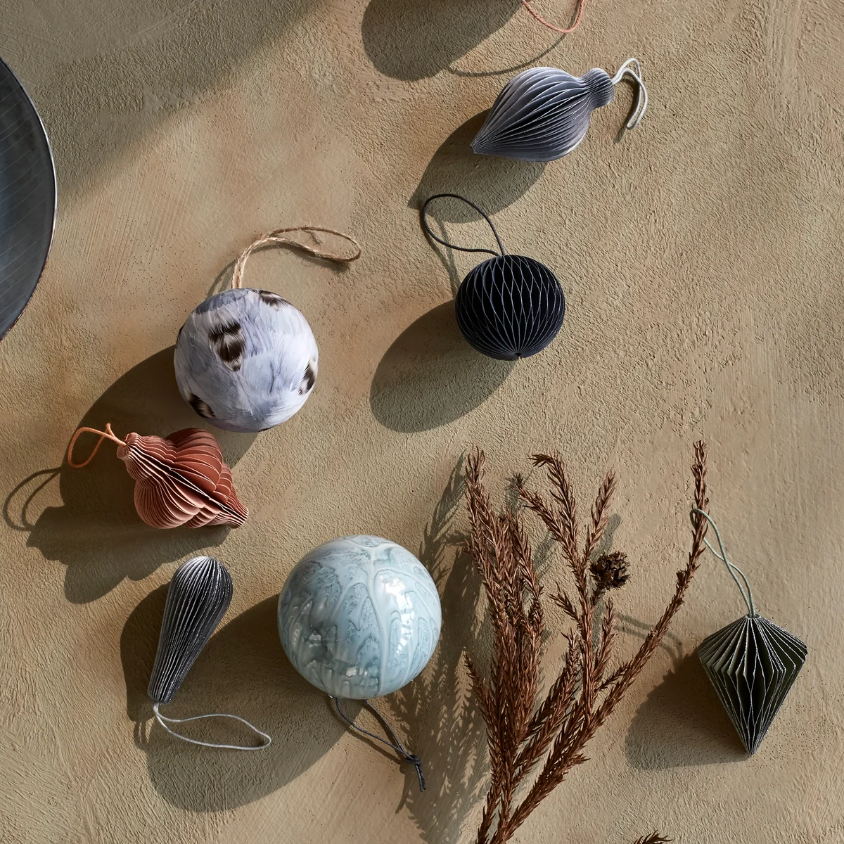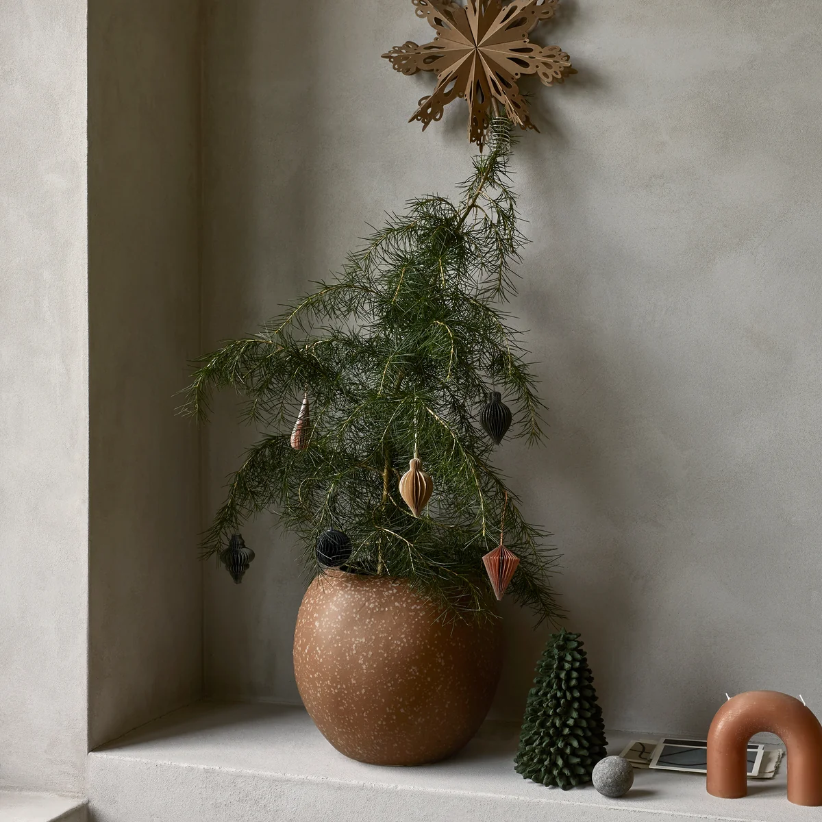 Die Christmas Mix Deko-Anhänger von Broste Copenhagen sind aus Papier gefertigt und erhalten durch eine Falttechnik und Scherenschnitt ihre geometrische Form. Am Weihnachtsbaum, oder an einem Strauch gefertigt, sorgen sie für festliche Stimmung und lassen sich bestens mit weiteren Anhängern kombinieren. Das Set besteht aus sechs Anhängern in verschiedenen Formen, die perfekt miteinander harmonieren.