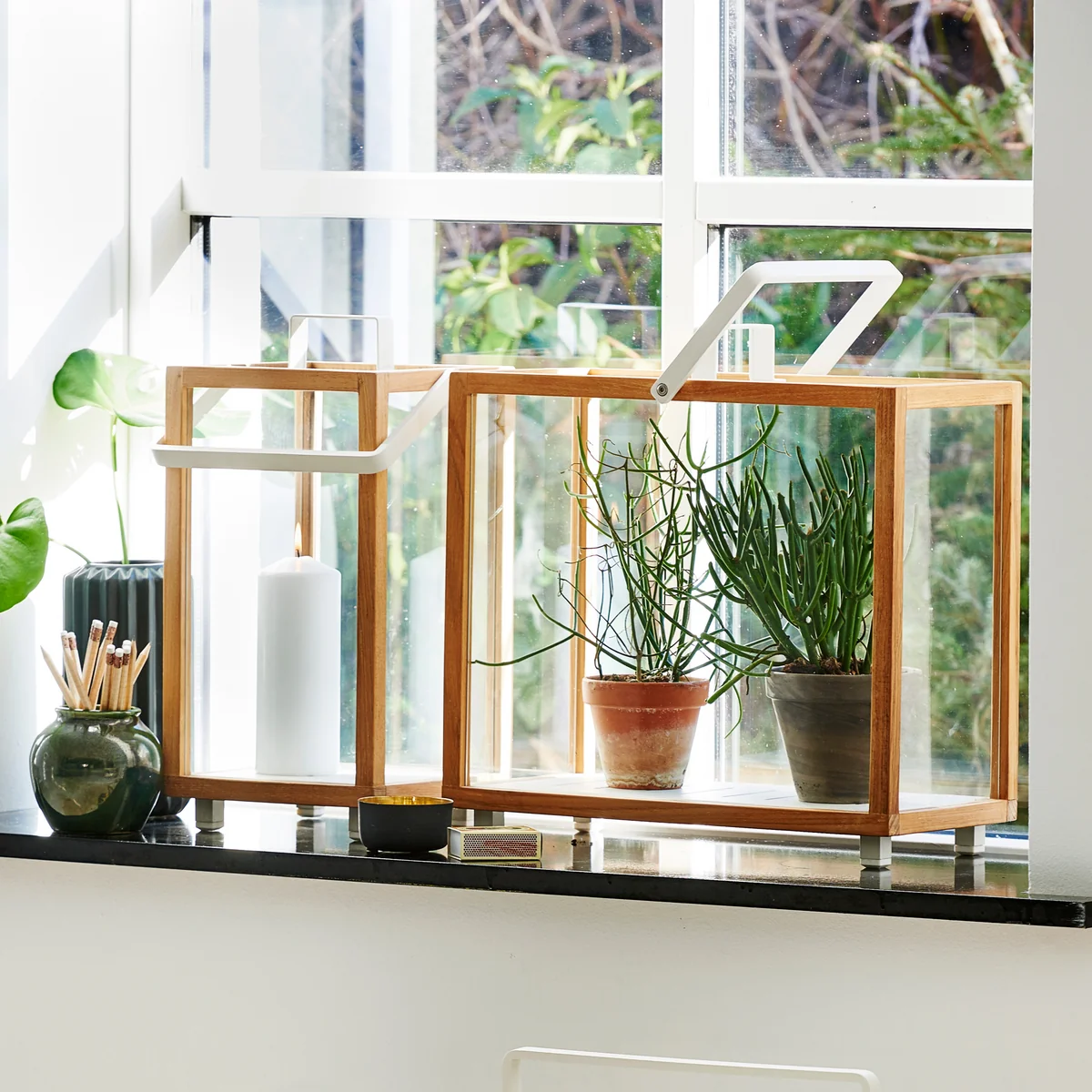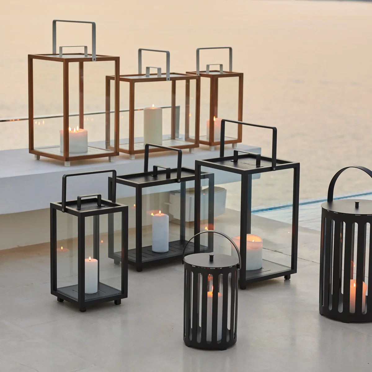 Die Lighthouse Laternen von Cane-line sind perfekte Begleiter für den Garten- und Terrassenbereich. Mit einem Mix aus Teak, Aluminium und Glasfenstern passen sich die Laternen unaufdringlich jeder Umgebung an. Der Kerzenschein sorgt außerdem für eine behagliche und warme Atmosphäre im Außenbereich. Dank des praktischen Griffs lässt sich die Laterne auch einfach tragen.