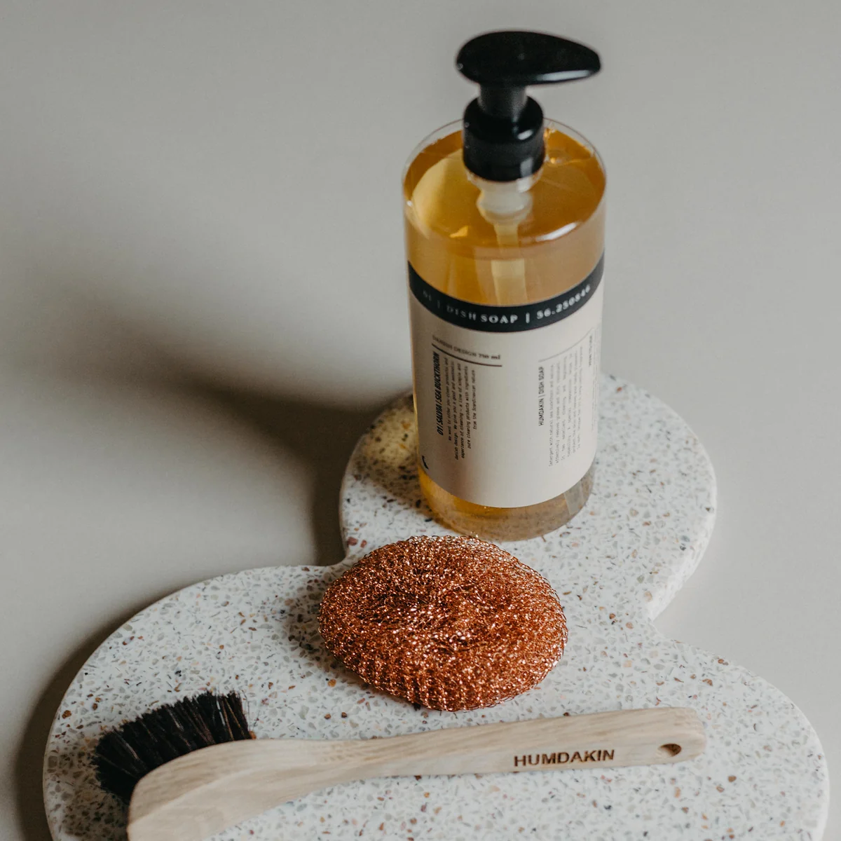 Das Geschirrspülmittel aus dem dänischen Hause Humdakin ist ein flüssiges Reinigungsmittel, das sich besonders gut eignet um Fett und Essensreste effektiv zu entfernen. Das Spülmittel liegt im pH-Wert-Bereich: 5,0 - 7,0 und umfasst 750 ml. Die Flasche wird aus recyceltem PET gefertigt.