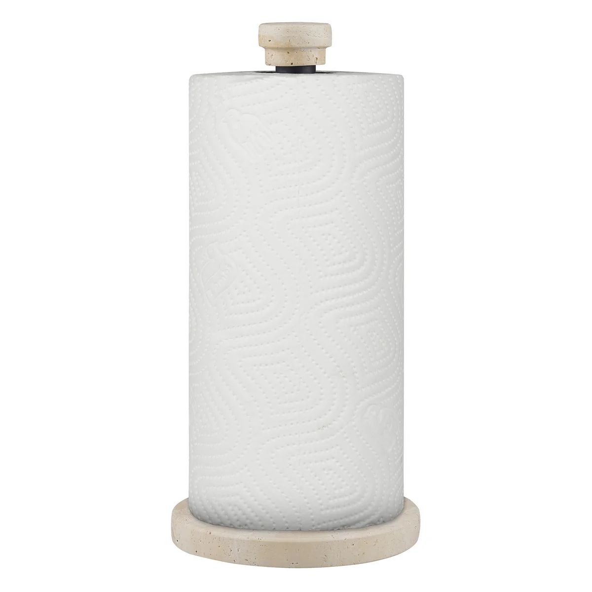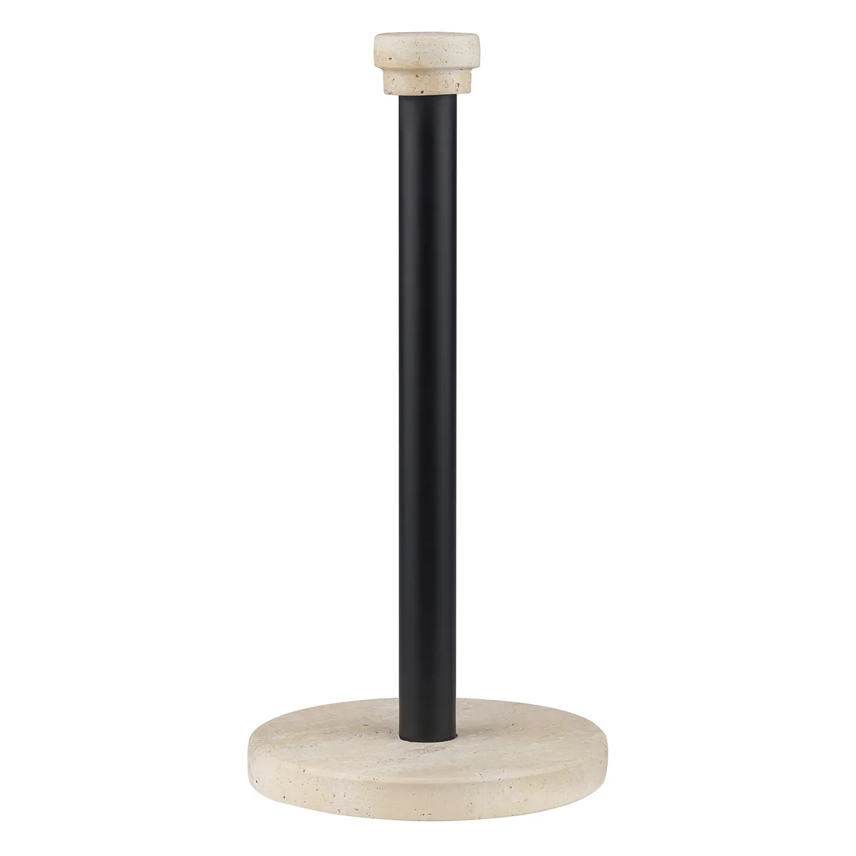 Der Travertine Küchenrollenhalter von Mette Ditmer verbindet Funktionalität mit Ästhetik. Die Kombination aus einer Basis und einem Knauf aus natürlichem Travertin verleiht dem Halter eine warme, organische Optik. Die einzigartige Textur und die charakteristischen Muster des Steins sorgen für einen stilvollen Akzent in der Küche. Der schlanke Stab aus schwarz pulverbeschichtetem Metall ergänzt die natürlichen Farbtöne des Travertins harmonisch. Dank der stabilen Konstruktion und des schweren Sockels bleibt der Halter sicher an Ort und Stelle und überzeugt durch eine perfekte Mischung aus Praktikabilität und Eleganz.