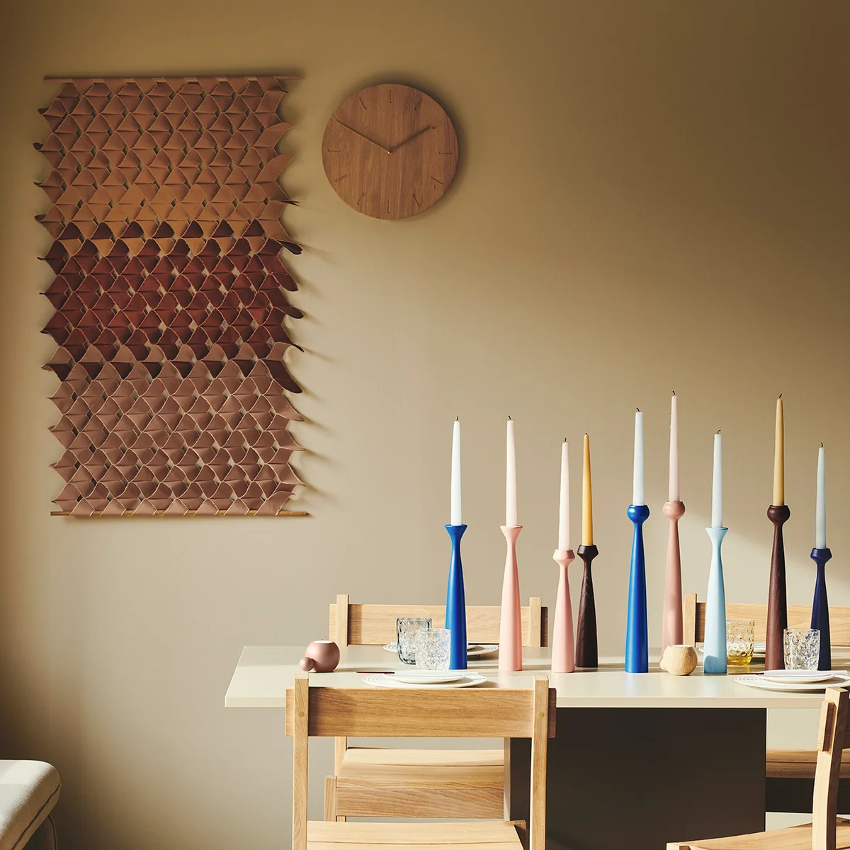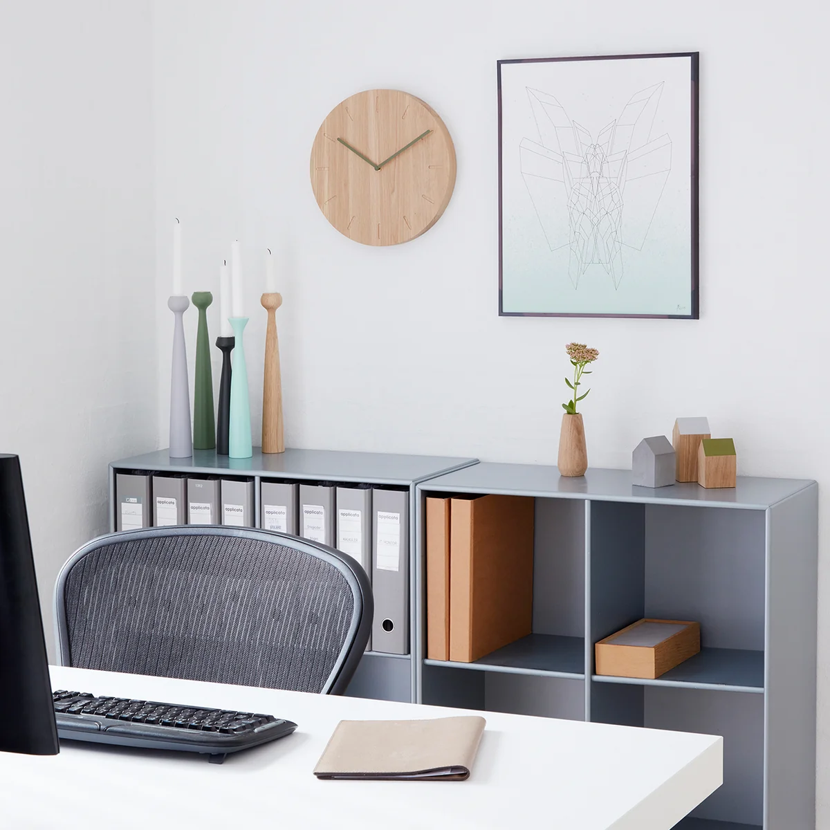 Die Scheibe ist aus Eichenholz gefertigt, die natürliche Maserung strahlt Wärme aus und lässt der Uhr ihre Natürlichkeit. Währenddessen verleihen die Messing-Zeiger der Watch:Out eine feine, elegante Note. So fühlt sich die applicata Wanduhr auch in der modernen Wohnungseinrichtung zuhause. Die Zeiger sind in unterschiedlichen Farben erhältlich, deren sanfte Töne - Mandarine, Messing und Grau - harmonieren perfekt mit dem naturbelassenen Eichenholz. Sie ermöglichen es, die Uhr an unterschiedliche Einrichtungen anzupassen, ohne das pure, rustikale Wesen der Wanduhr zu gefährden.
